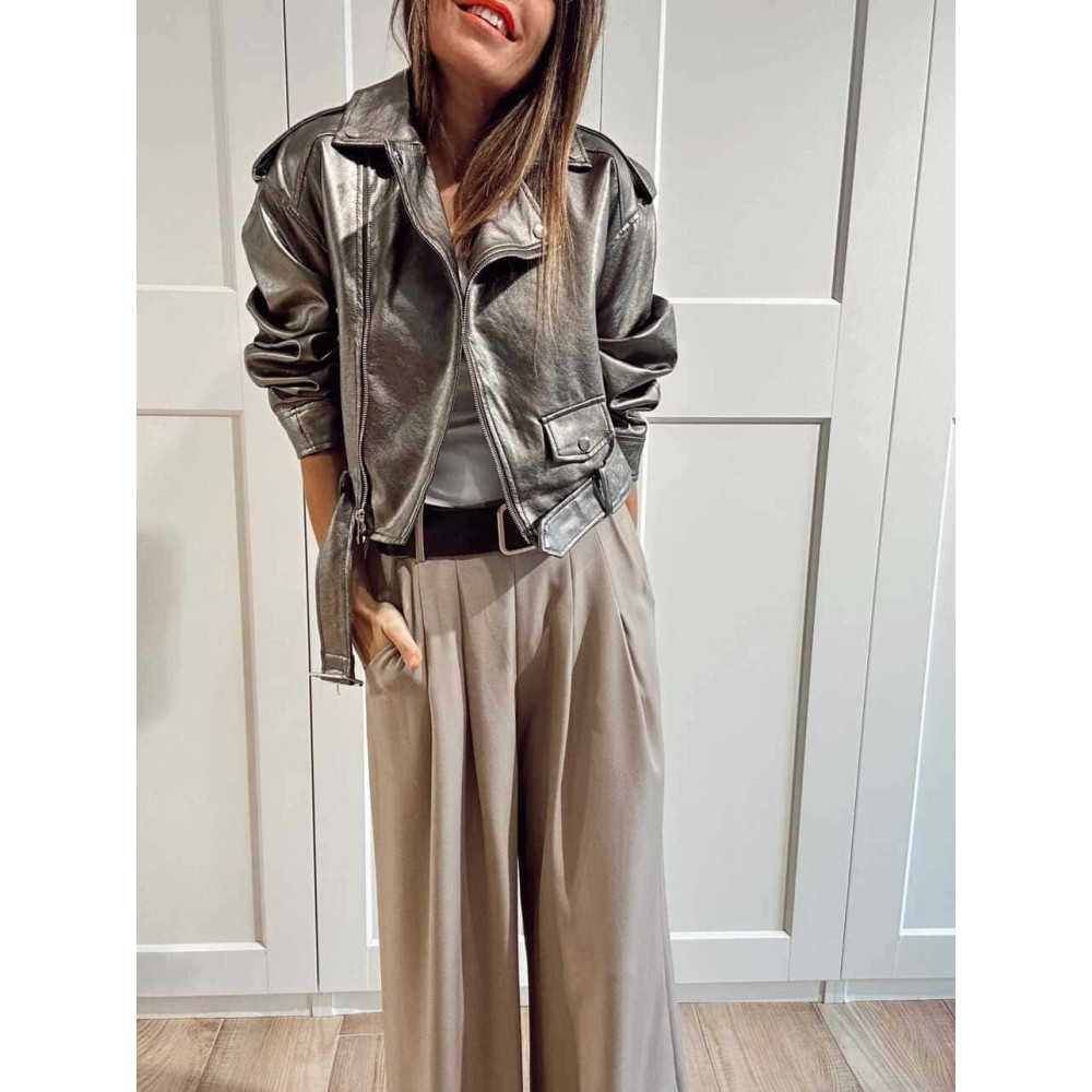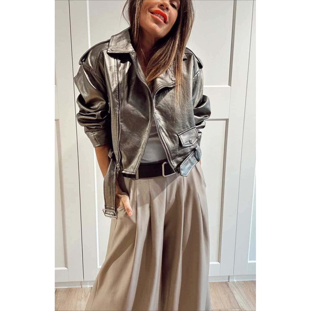 Biker Cropped Efecto Piel NYXELLE Gunmetal HEVE