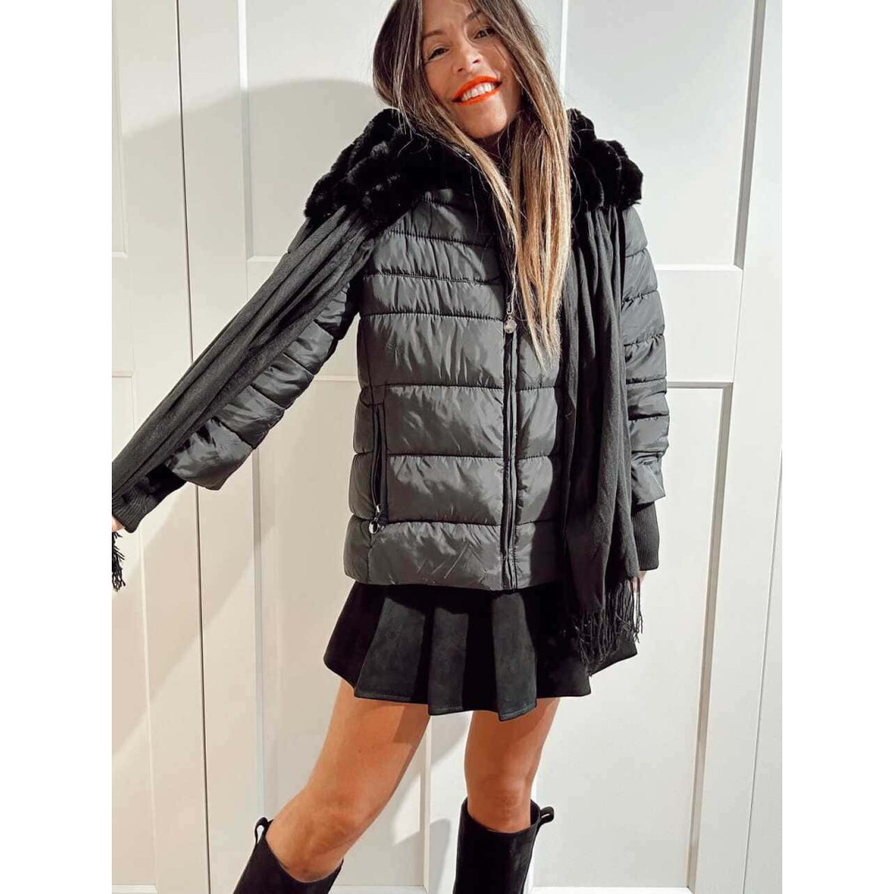 Chaqueta Acolchada con Fular Combinado ZELVO Negro