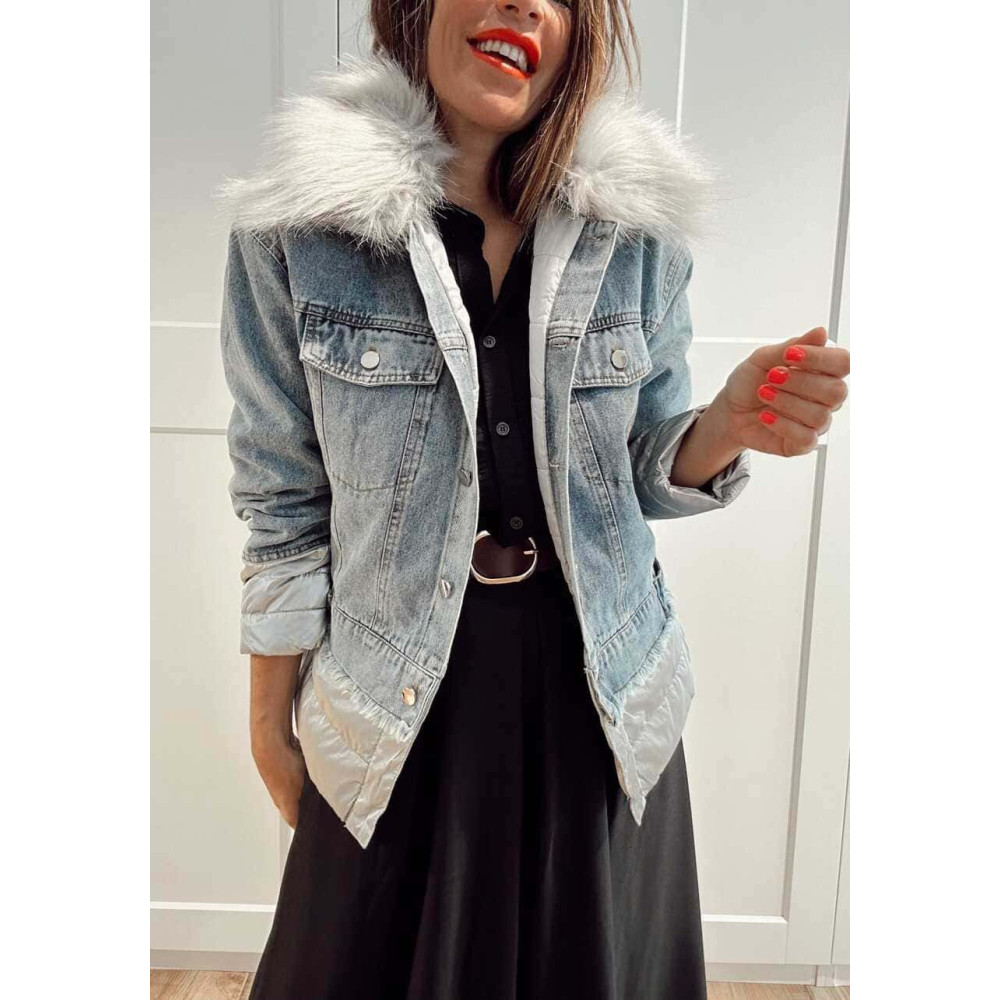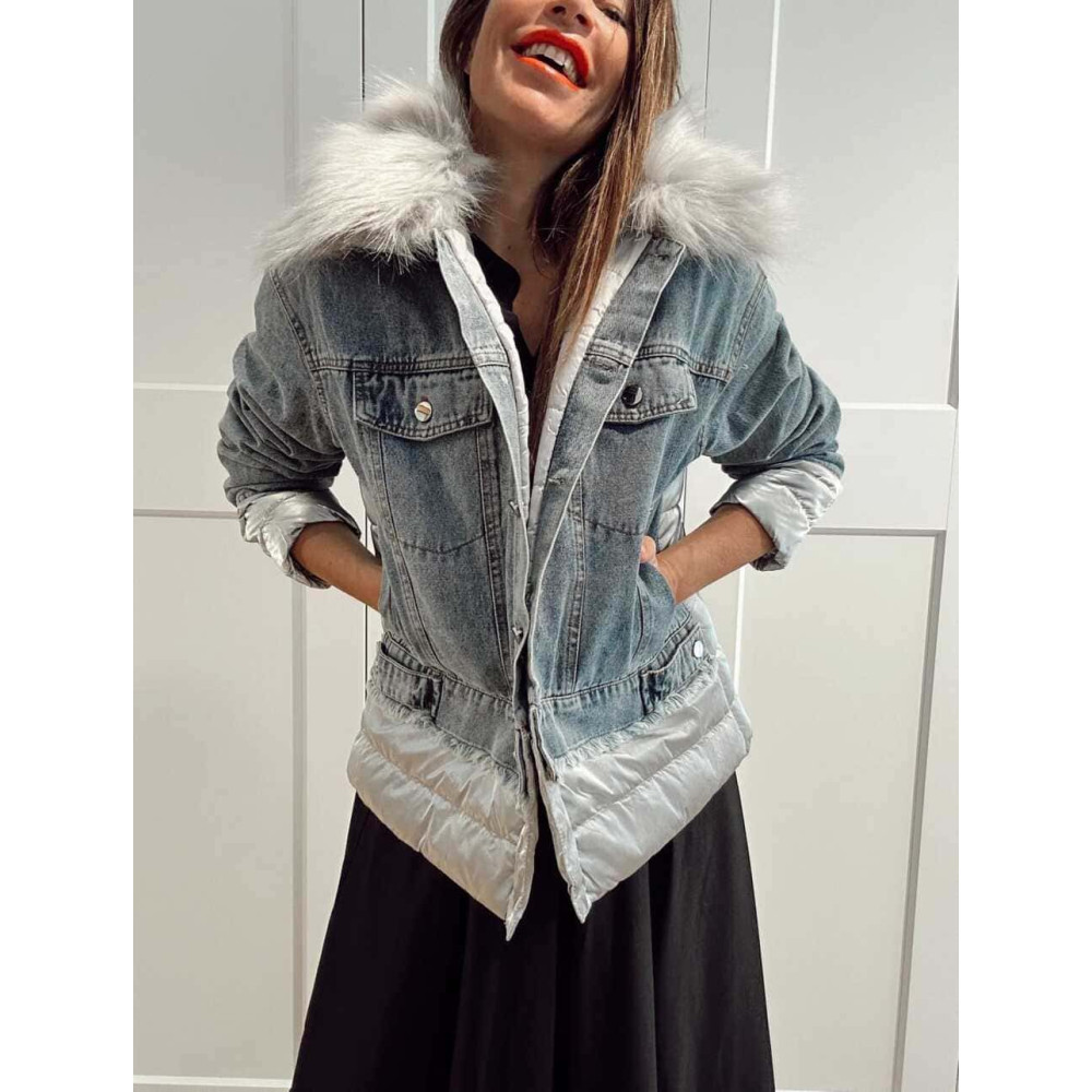 Cazadora Vaquera Combinada LAKORA Blue Jean/Gris