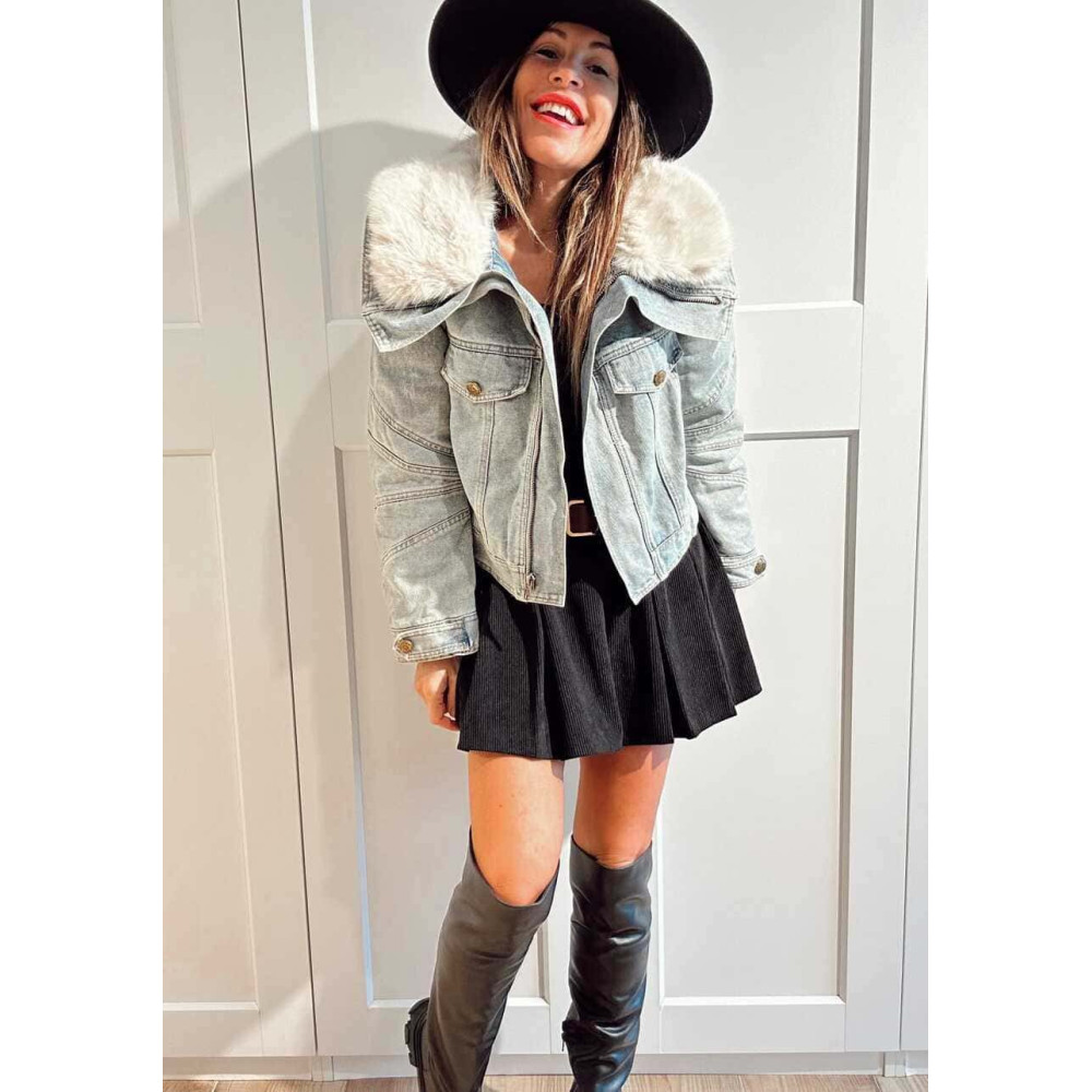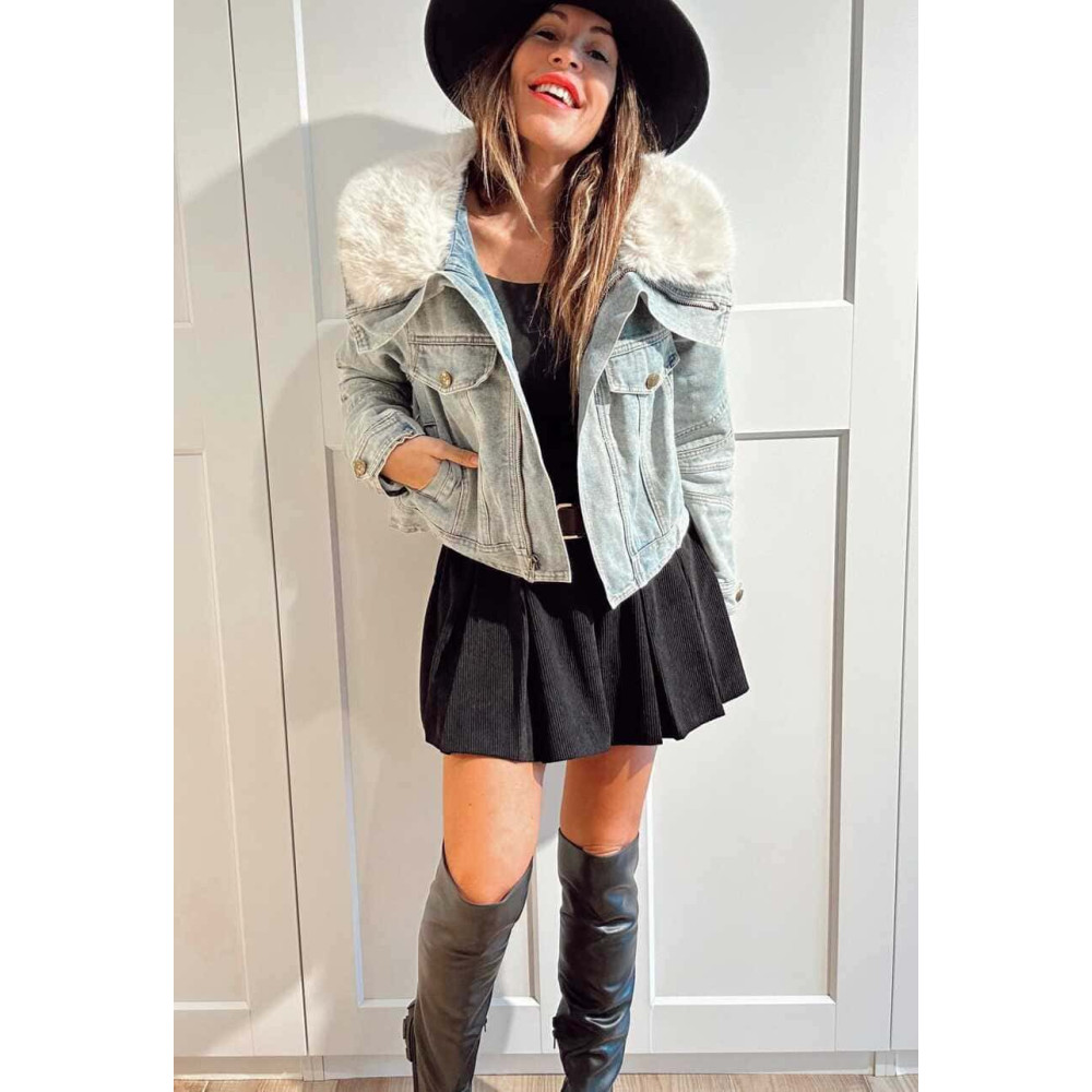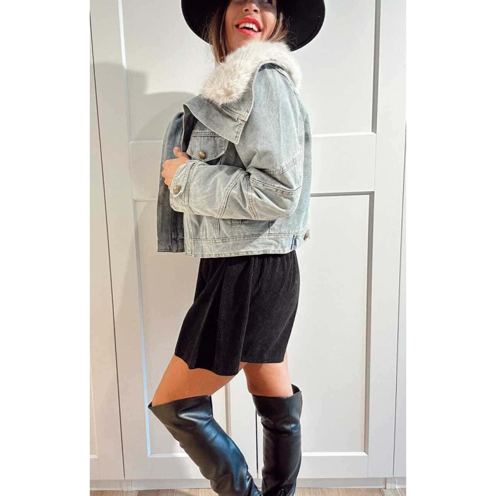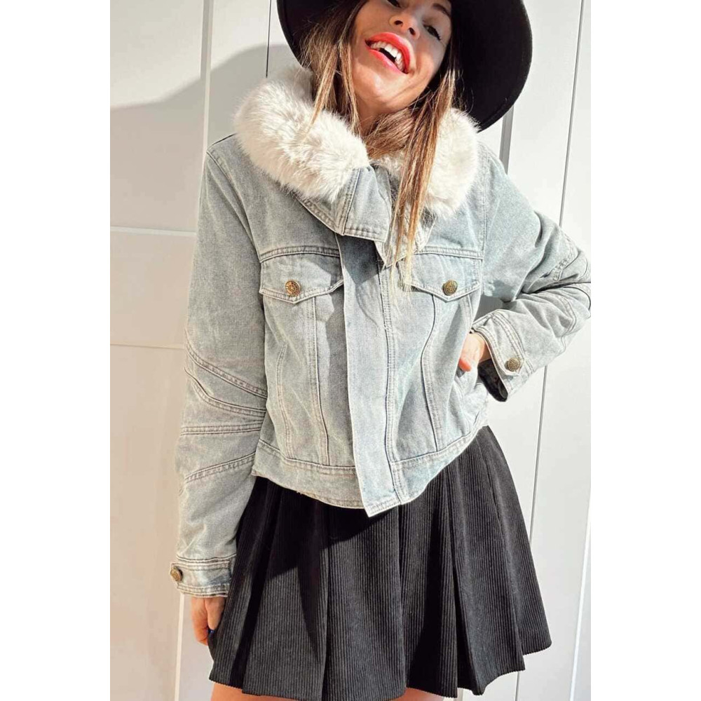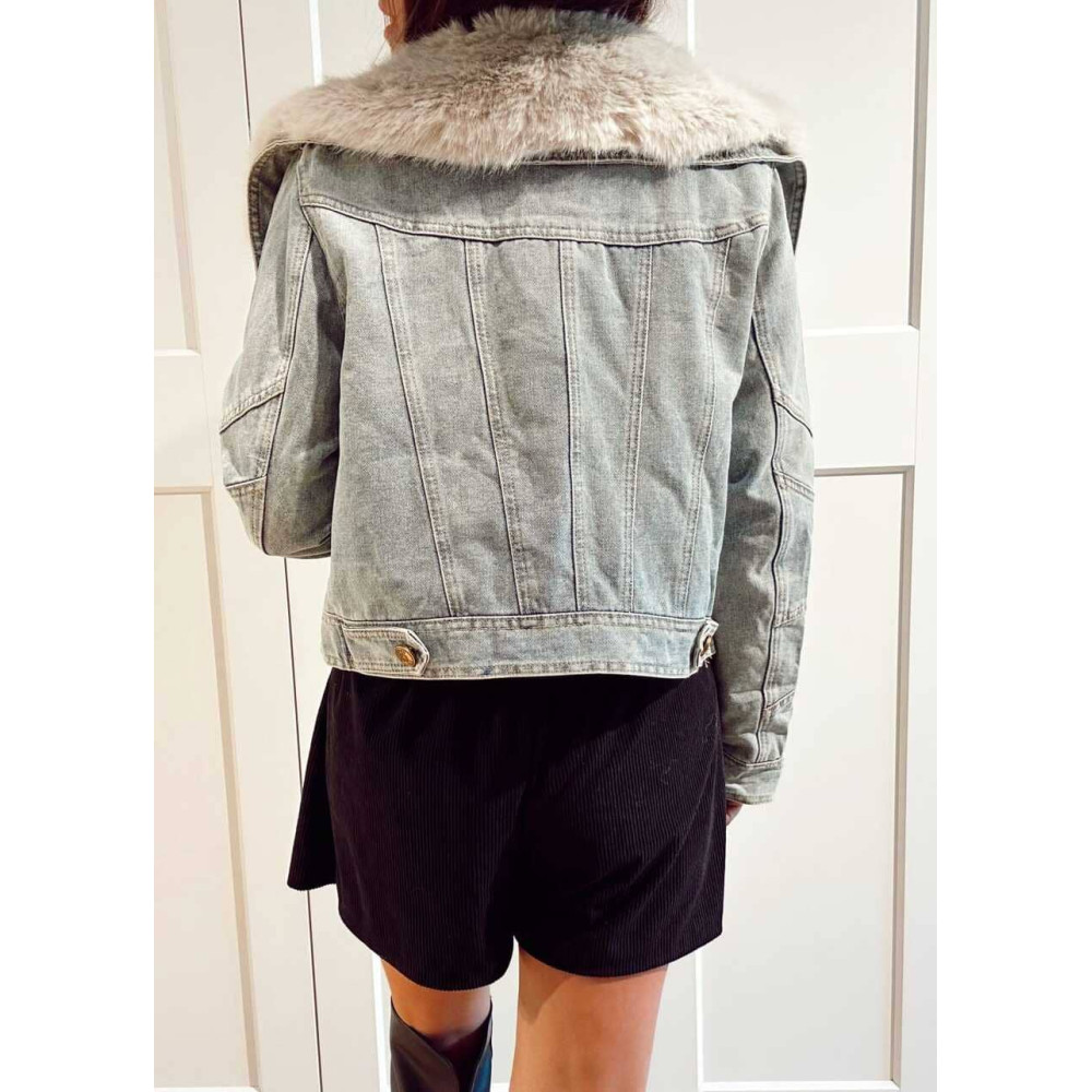 - Cazadora vaquera corta con sobrecuello de pelo sintético extraíble.