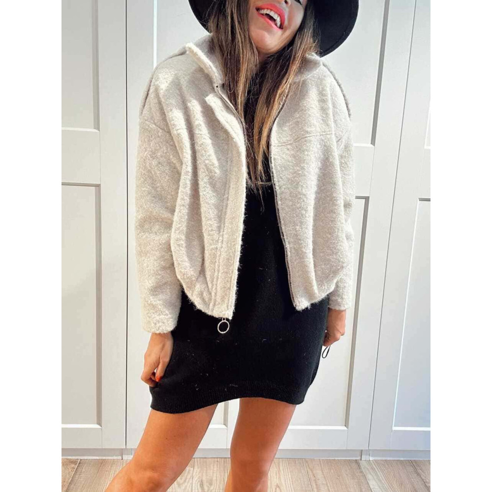 - Chaqueta tipo cazadora confeccionada en tejido de tacto suave y cálido con acabado rizo ❤