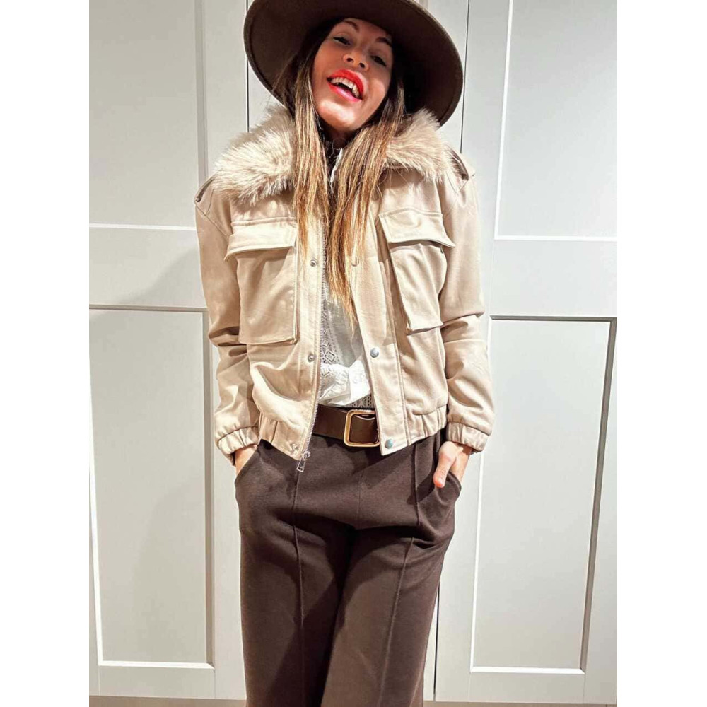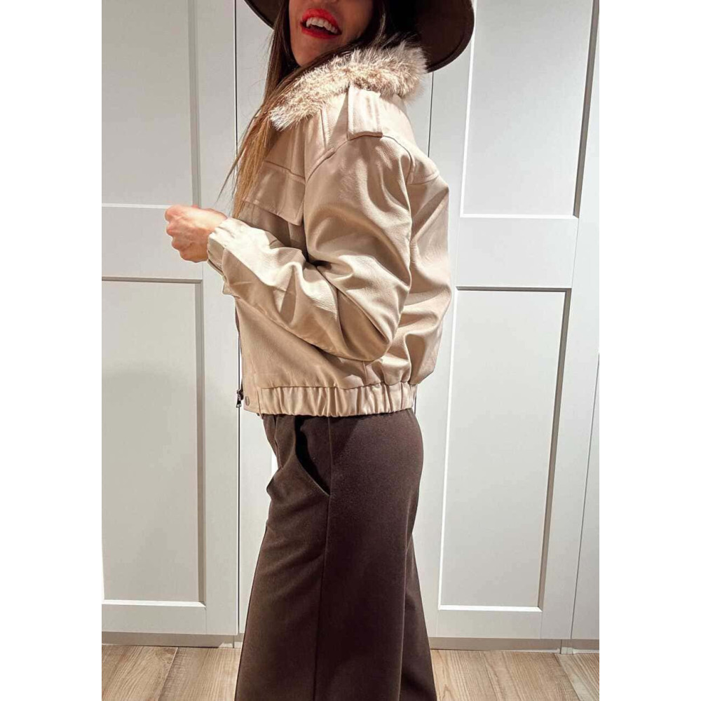 Cazadora Piel Sintética Sobrecuello VALKRA Beige