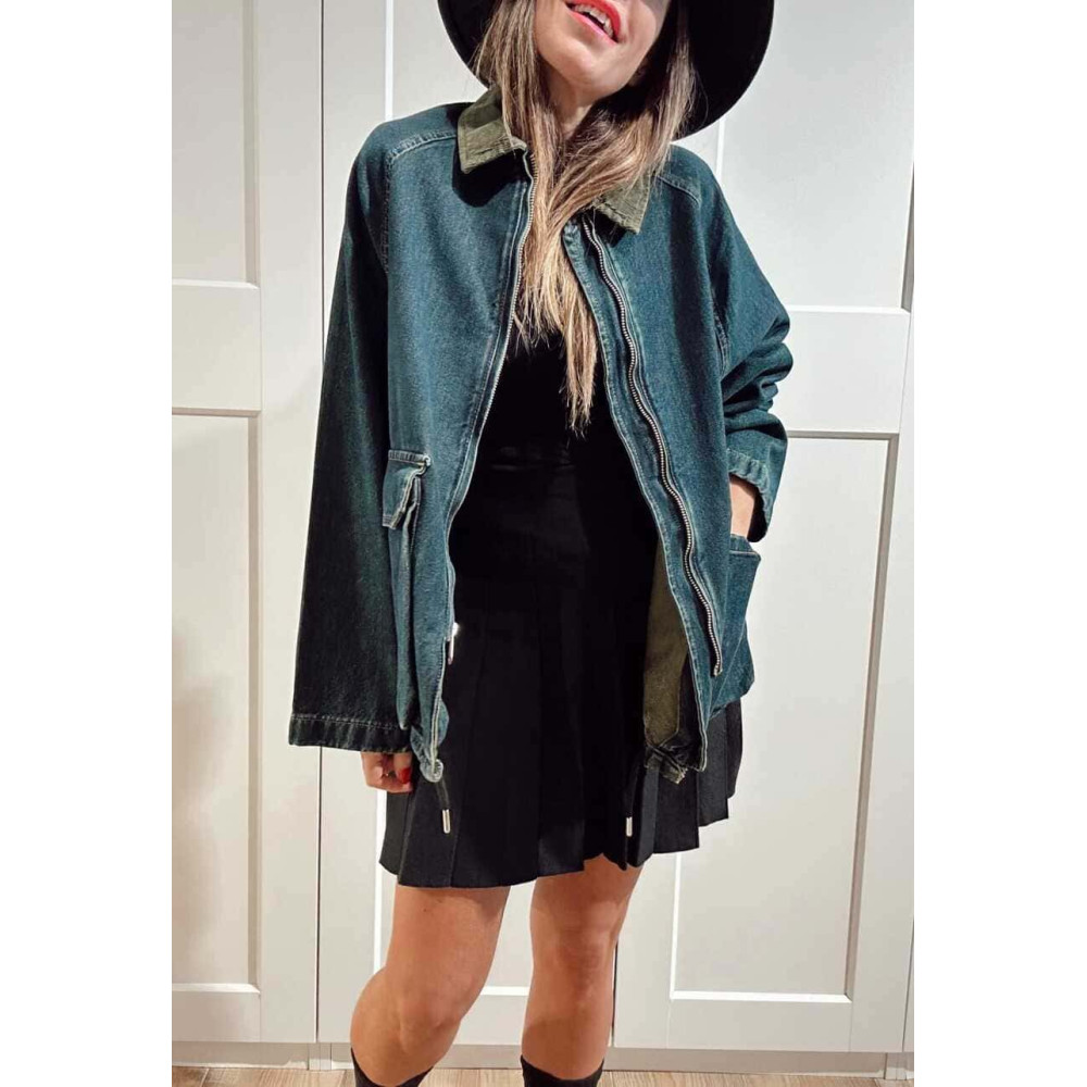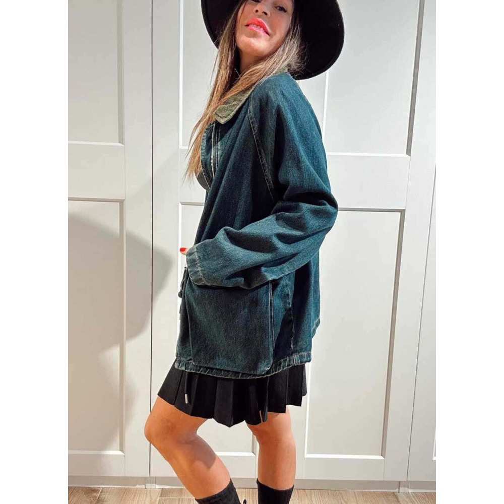 Chaqueta Vaquera Cuello Pana Azul Índigo/Verde