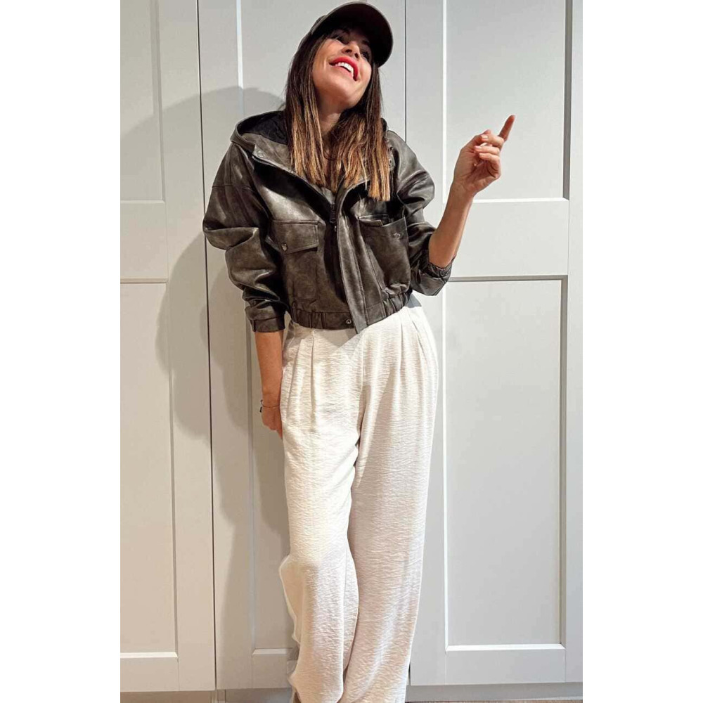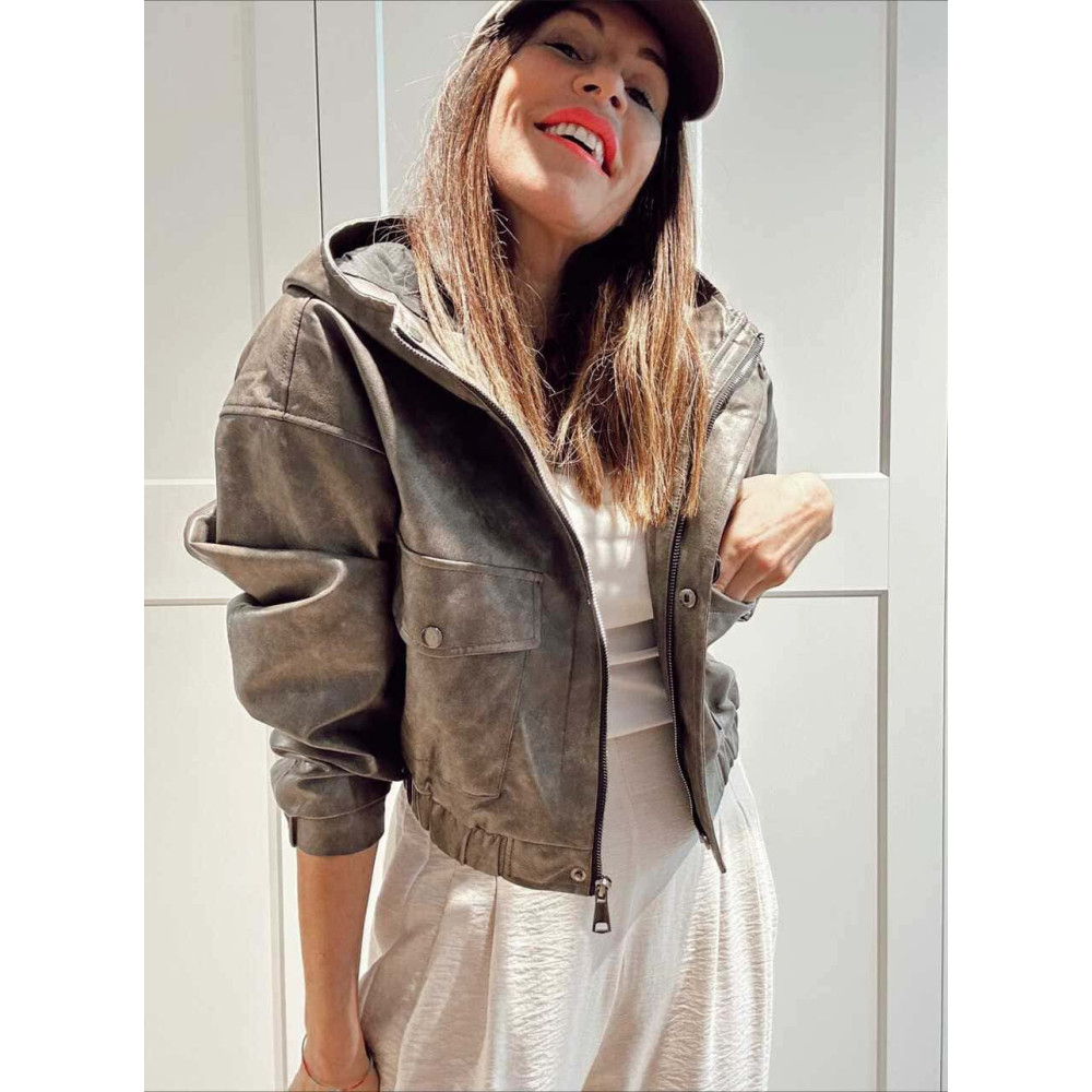 - Chaqueta tipo cazadora confeccionada en piel sintética color gris piedra con tintada efecto vintage ❤