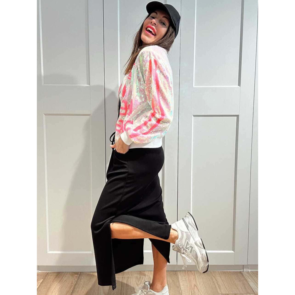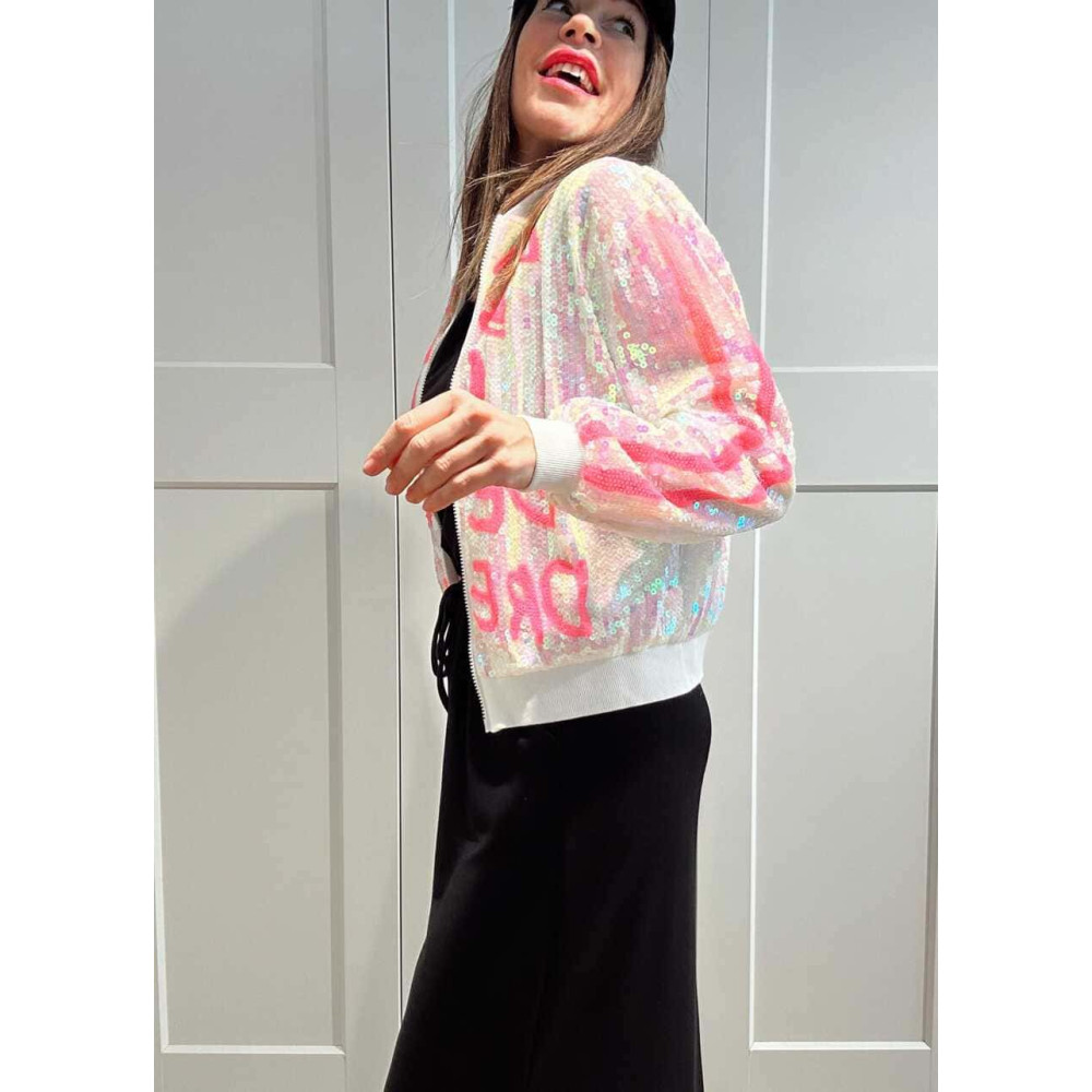 - Chaqueta fina tipo bomber con acabado lentejuelas.