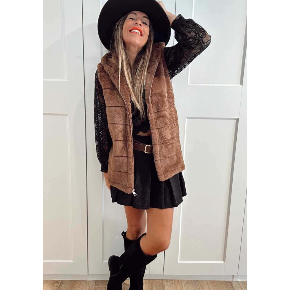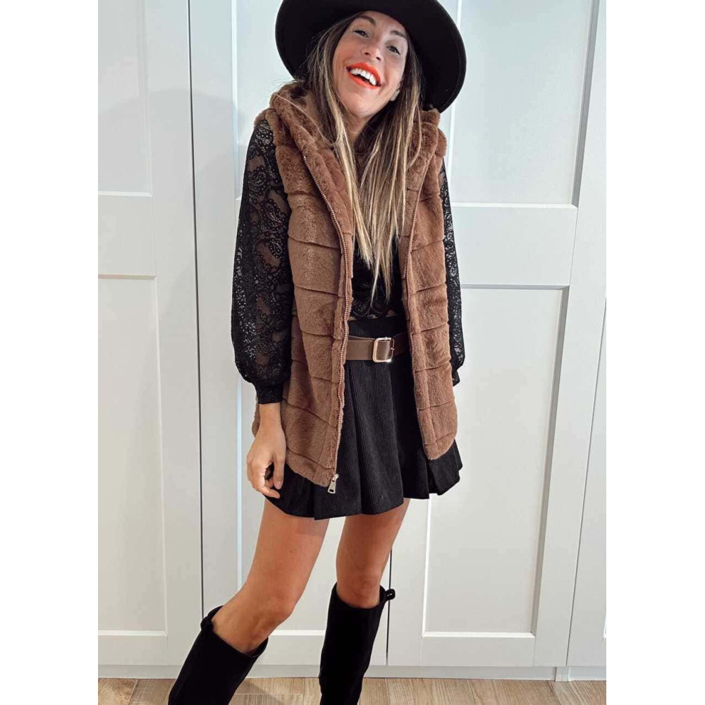 Ésta son aprox. las medidas del Chaleco Efecto Pelo GISELLE Marrón: