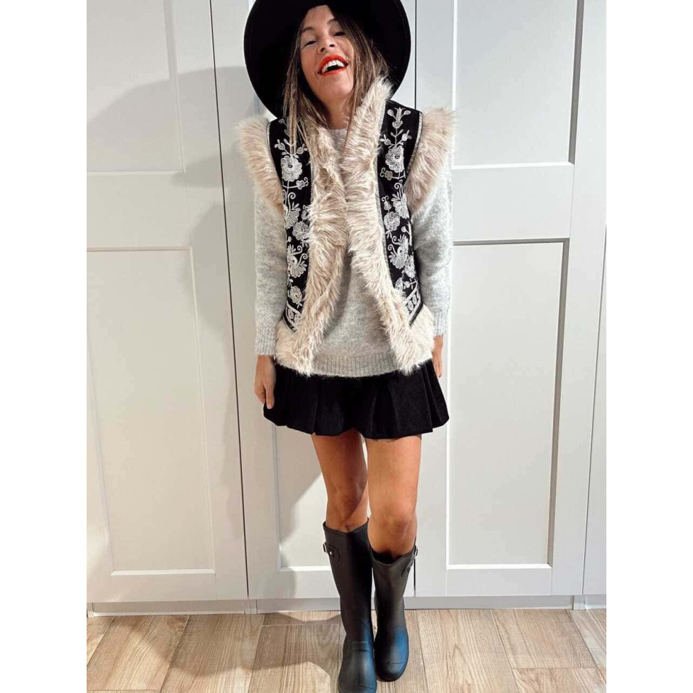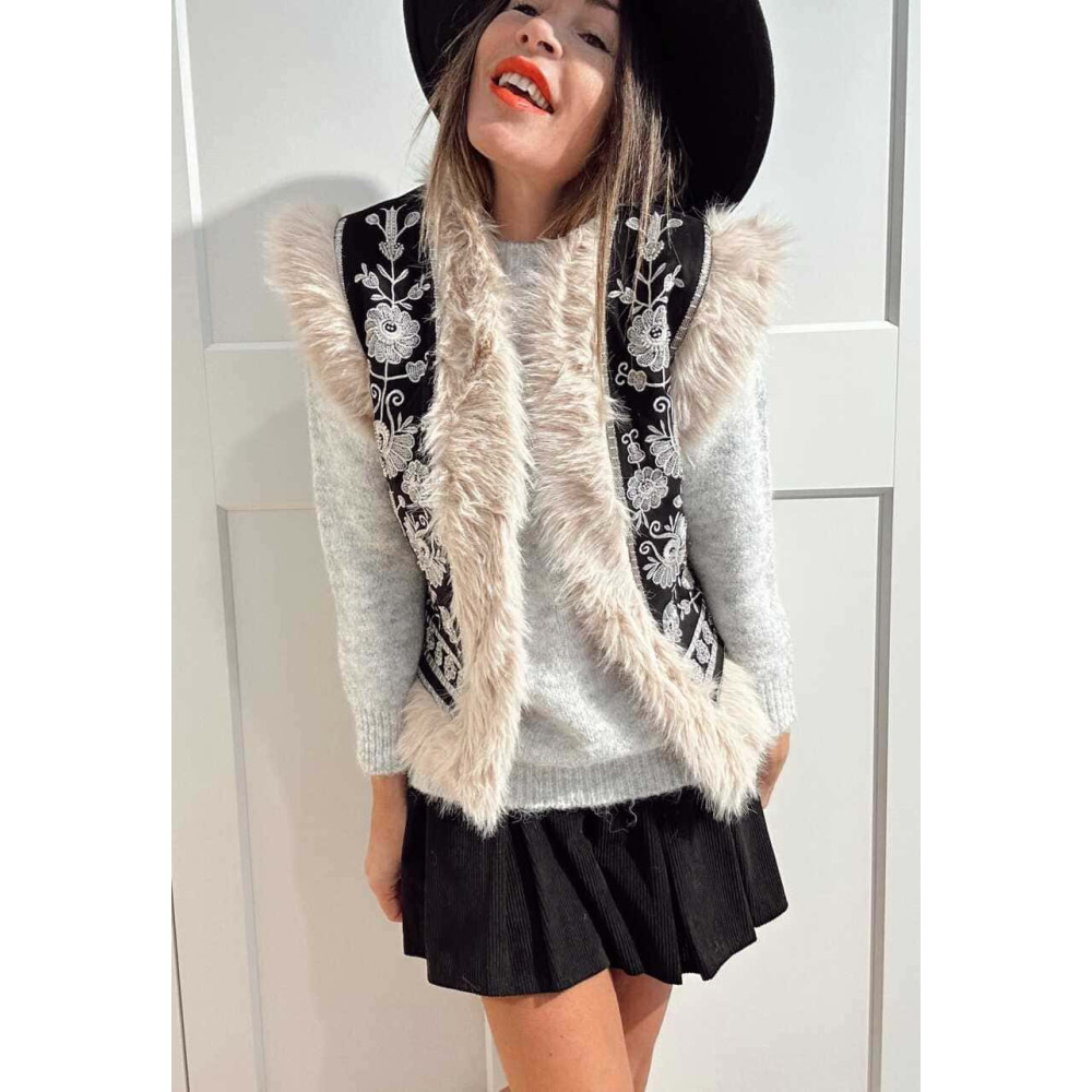 Chaleco Bordado Floral SUMAYRA Negro/Gris