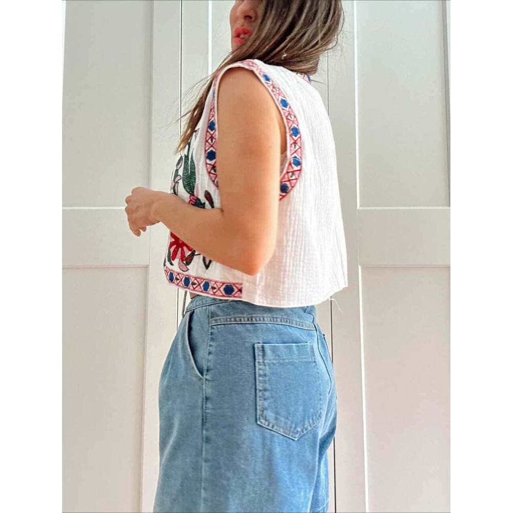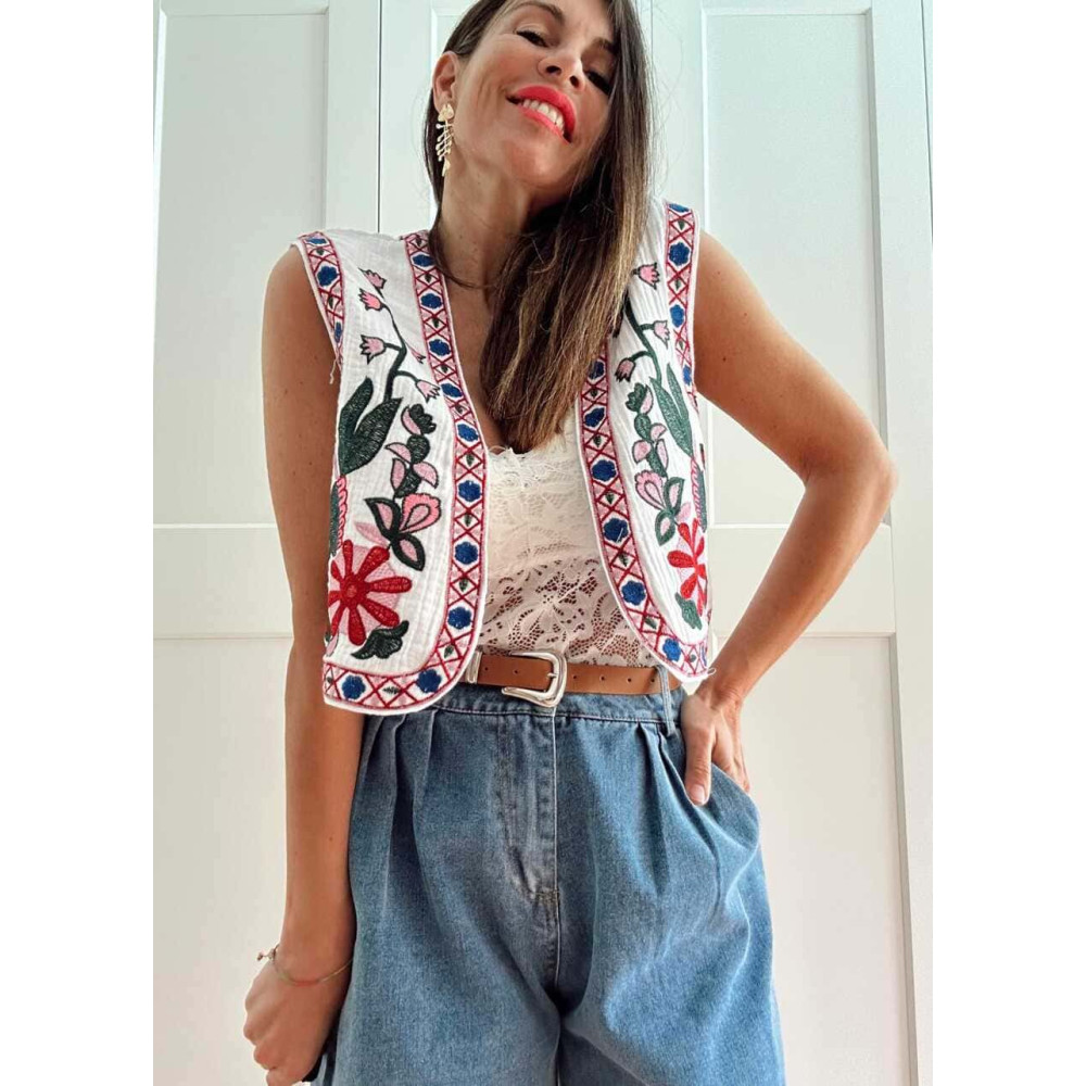 - Chaleco corto de inspiración étnica con bordados en delantero.