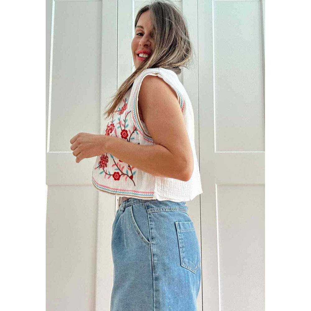 - Chaleco corto de inspiración étnica con bordados en delantero.