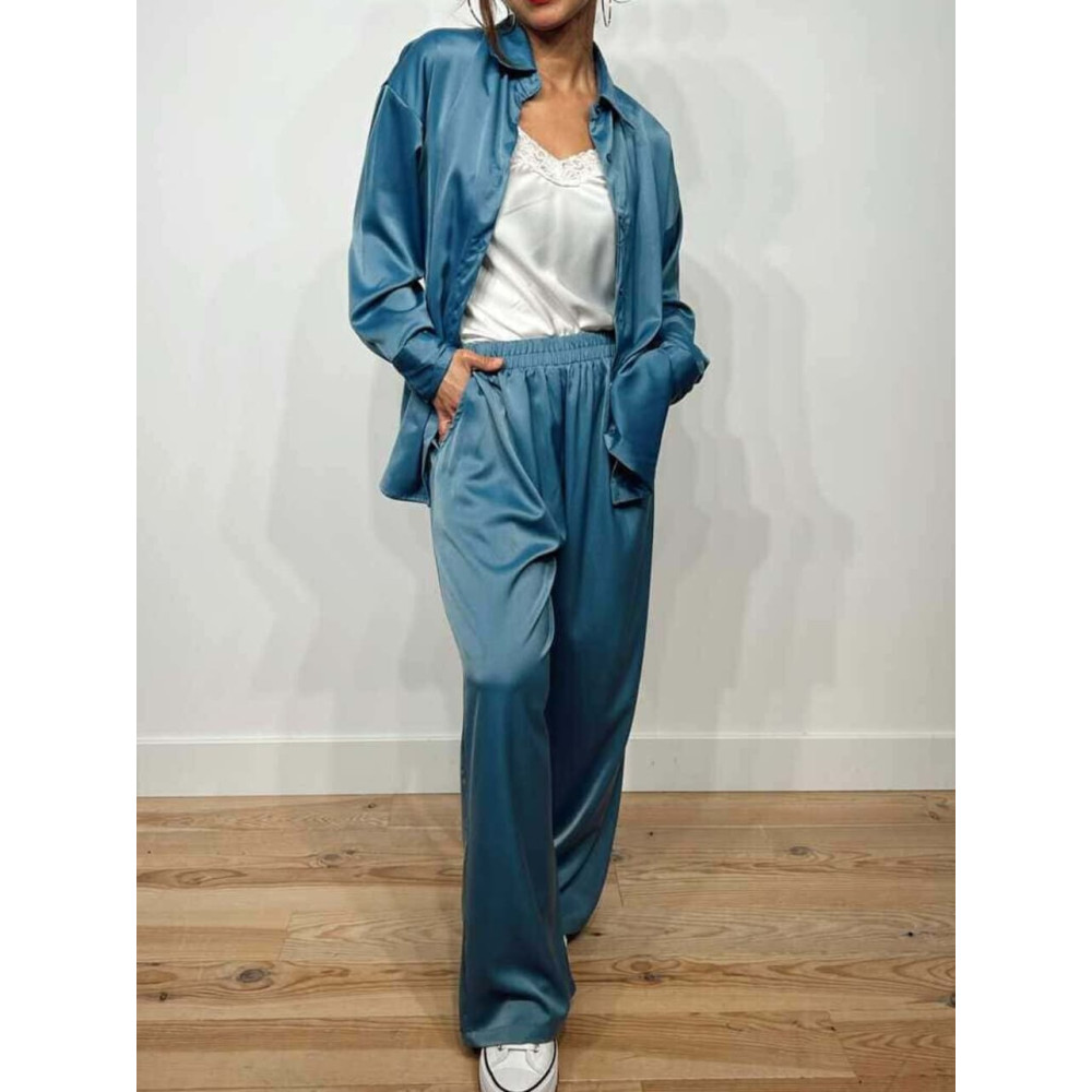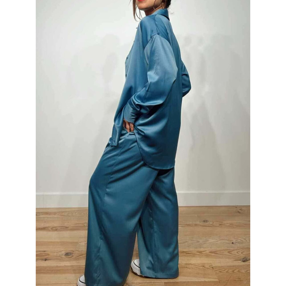 Conjunto Camisero Satinado MAZIKEEN Azul