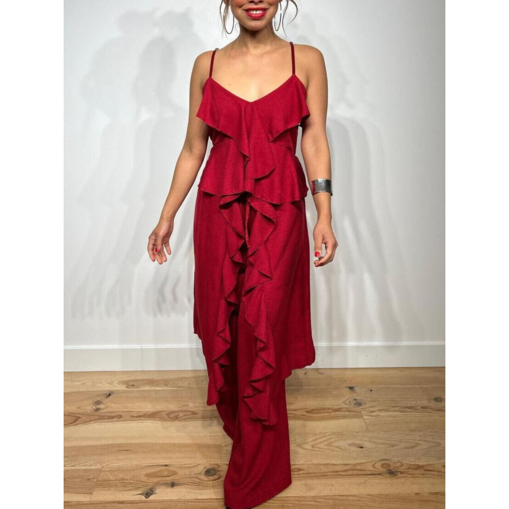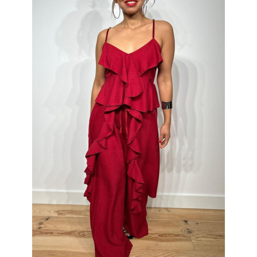Conjunto Top Extra-Long y Pantalón GHODES Burdeos