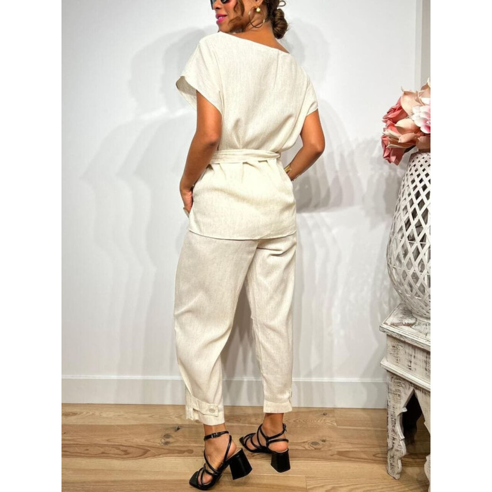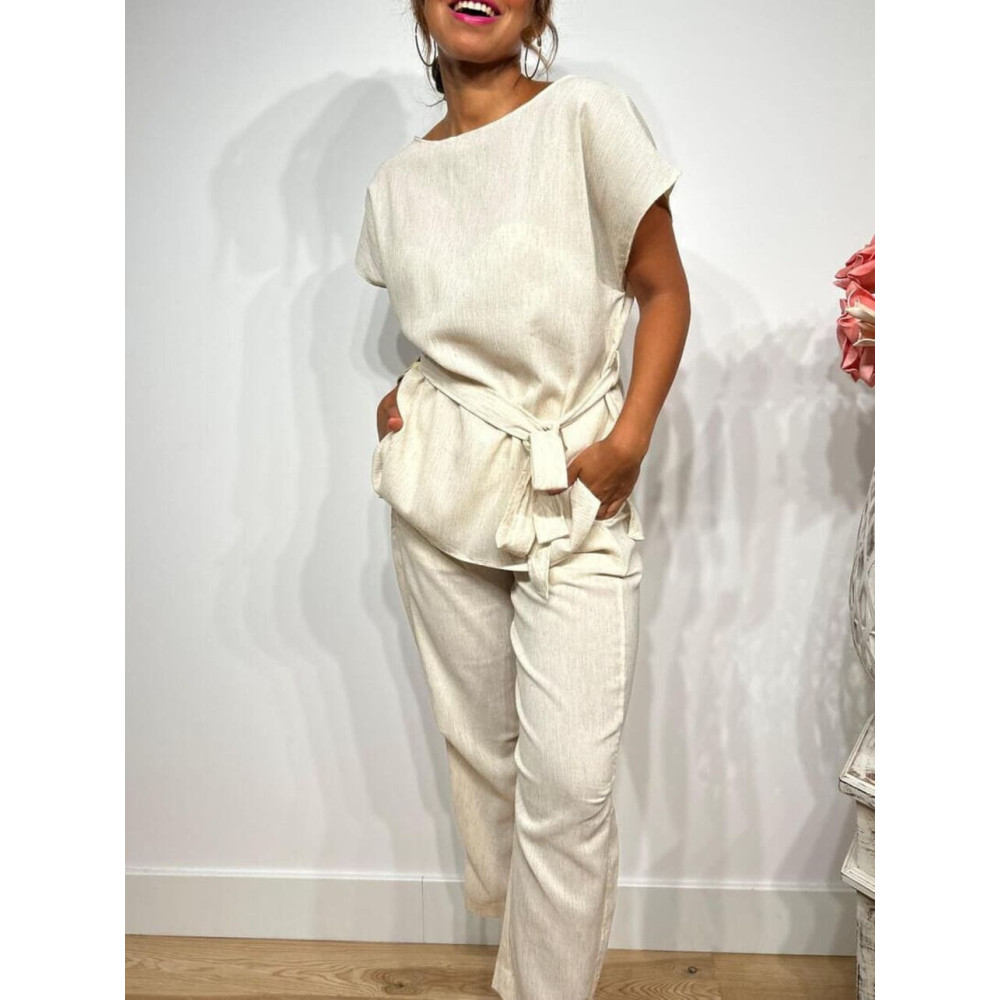 Conjunto Cuerpo y Pantalón Lino SOOMY Beige