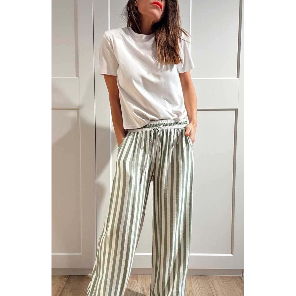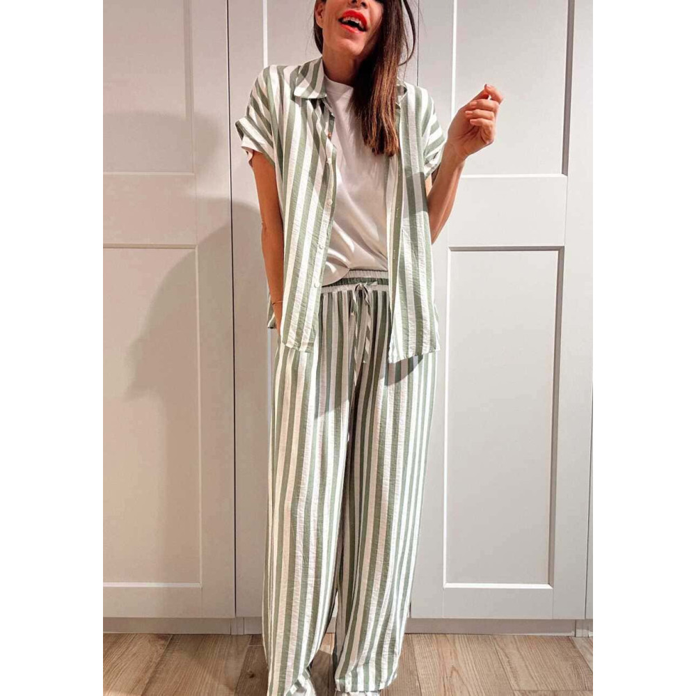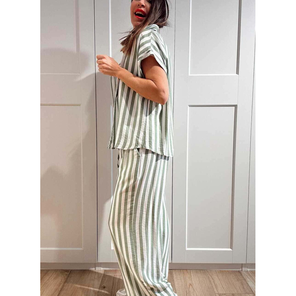 Conjunto dos piezas estilo pijamero confeccionado en viscosa con mezcla de lino y estampado de rayas verde/blanco. Puedes llevarlo junto o por separado... ¡¡tú eliges!! ❤