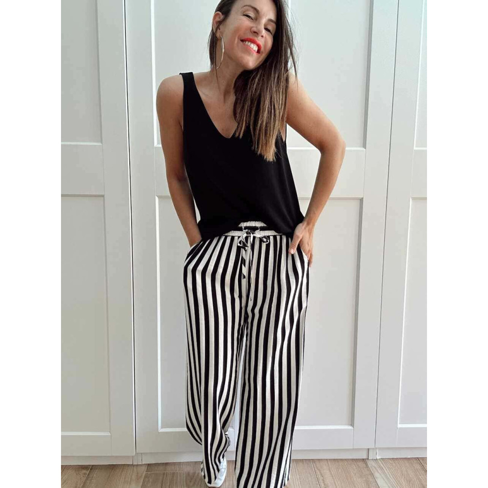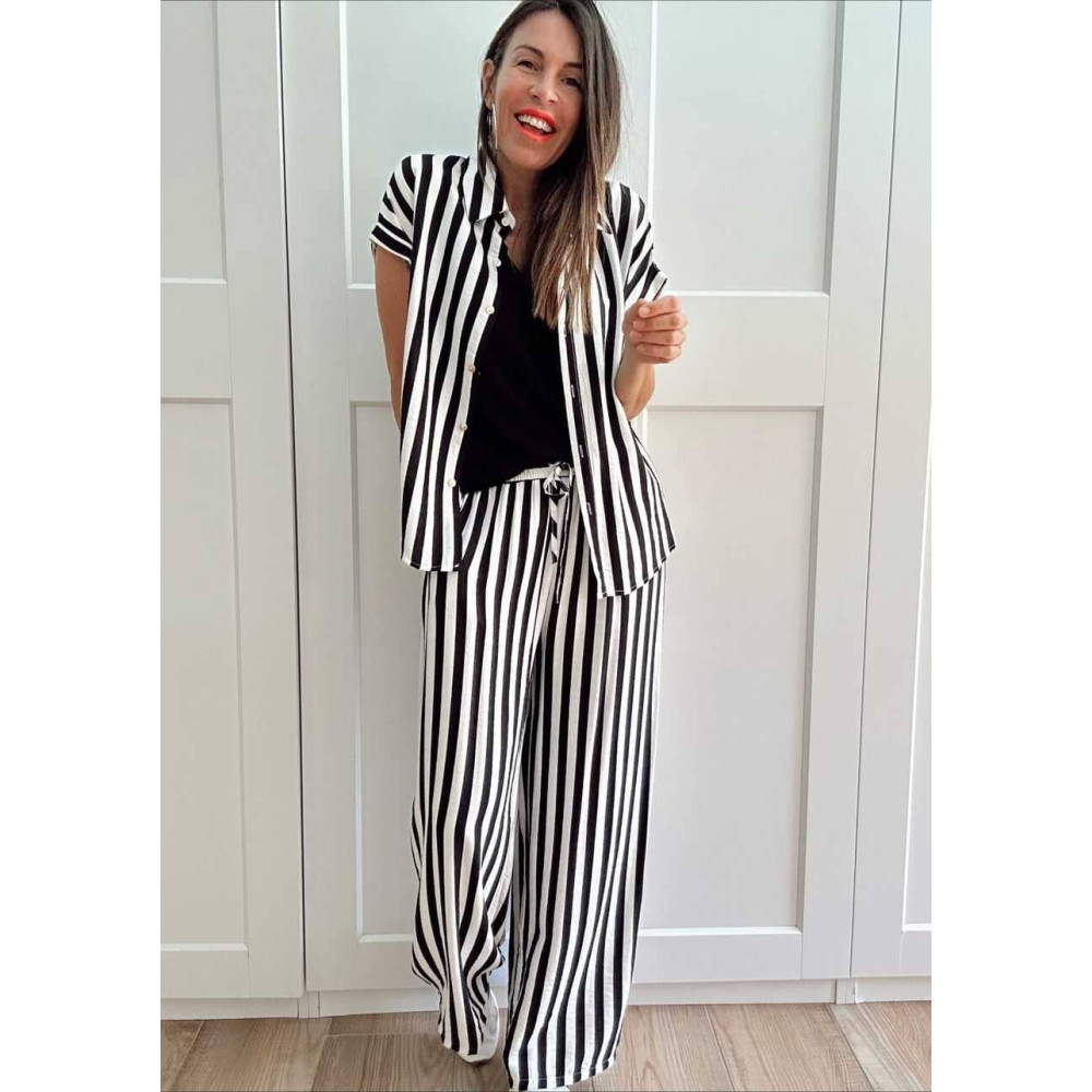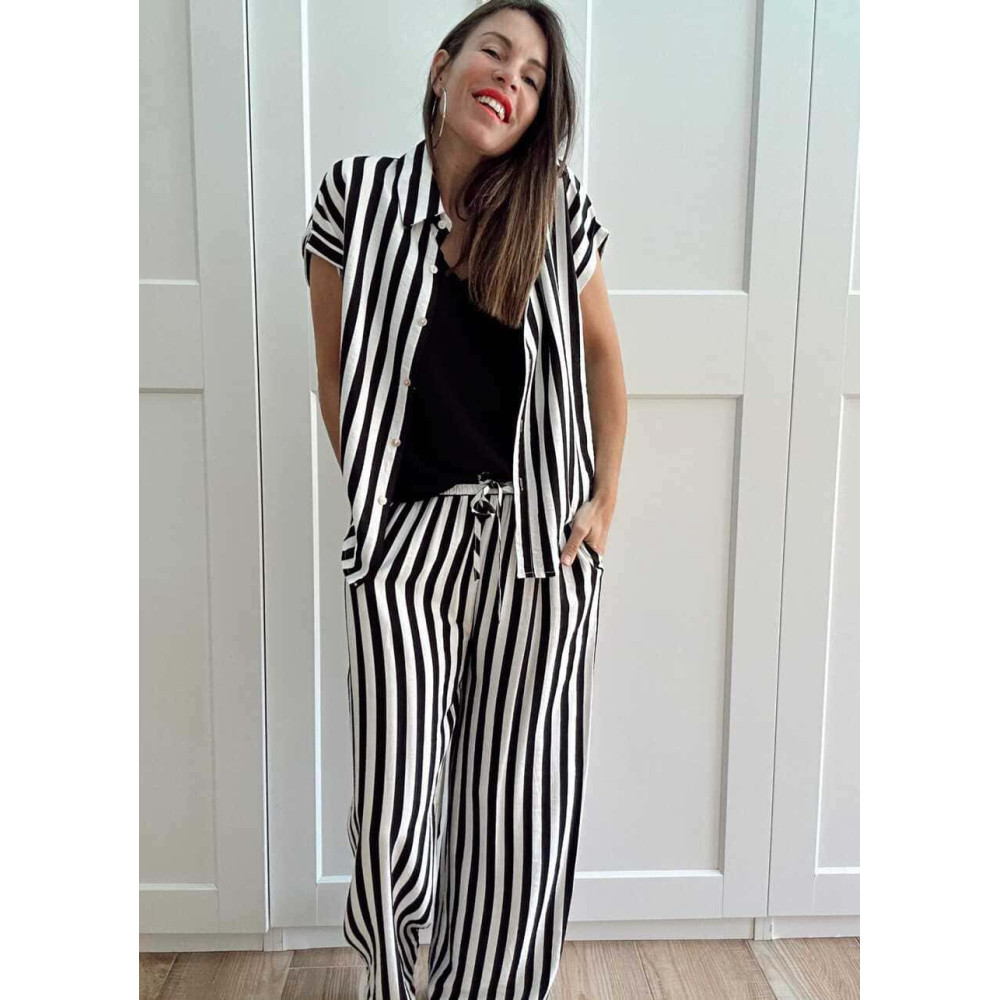 Conjunto dos piezas estilo pijamero confeccionado en viscosa con mezcla de lino y estampado de rayas negro/blanco. Puedes llevarlo junto o por separado... ¡¡tú eliges!! ❤