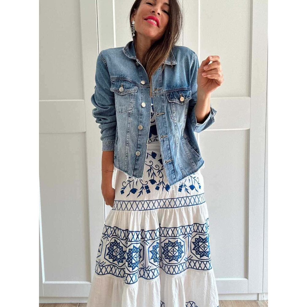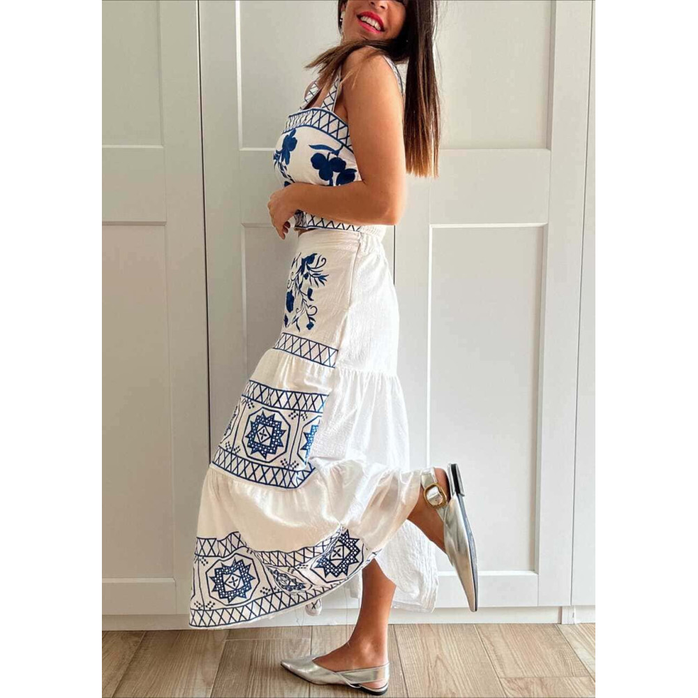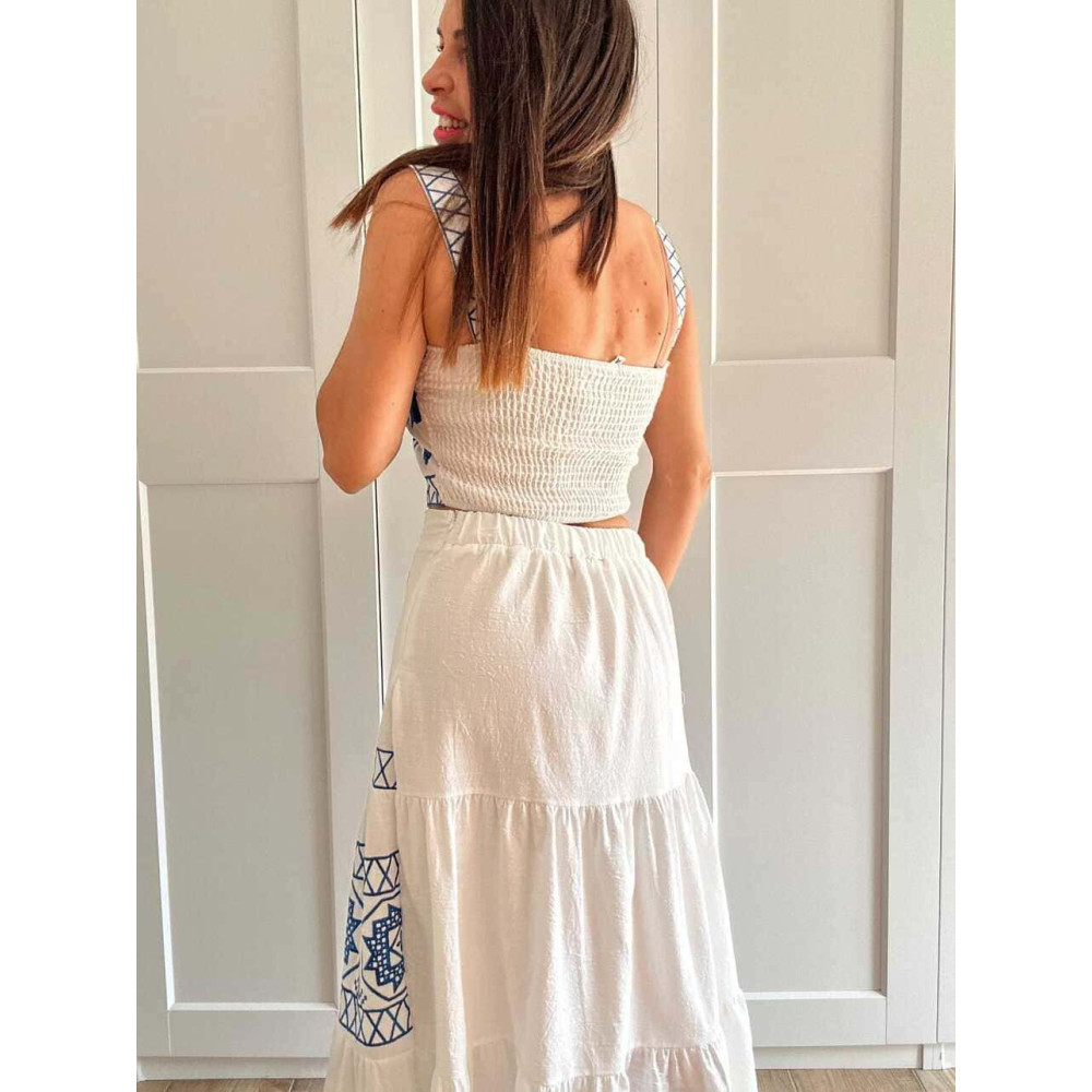 Conjunto dos piezas de inspiración boho-chic con bordado floral y toques étnicos, confeccionado en algodón firme con acabado rústicoPuedes llevarlo junto o por separado... ¡¡tú eliges!!