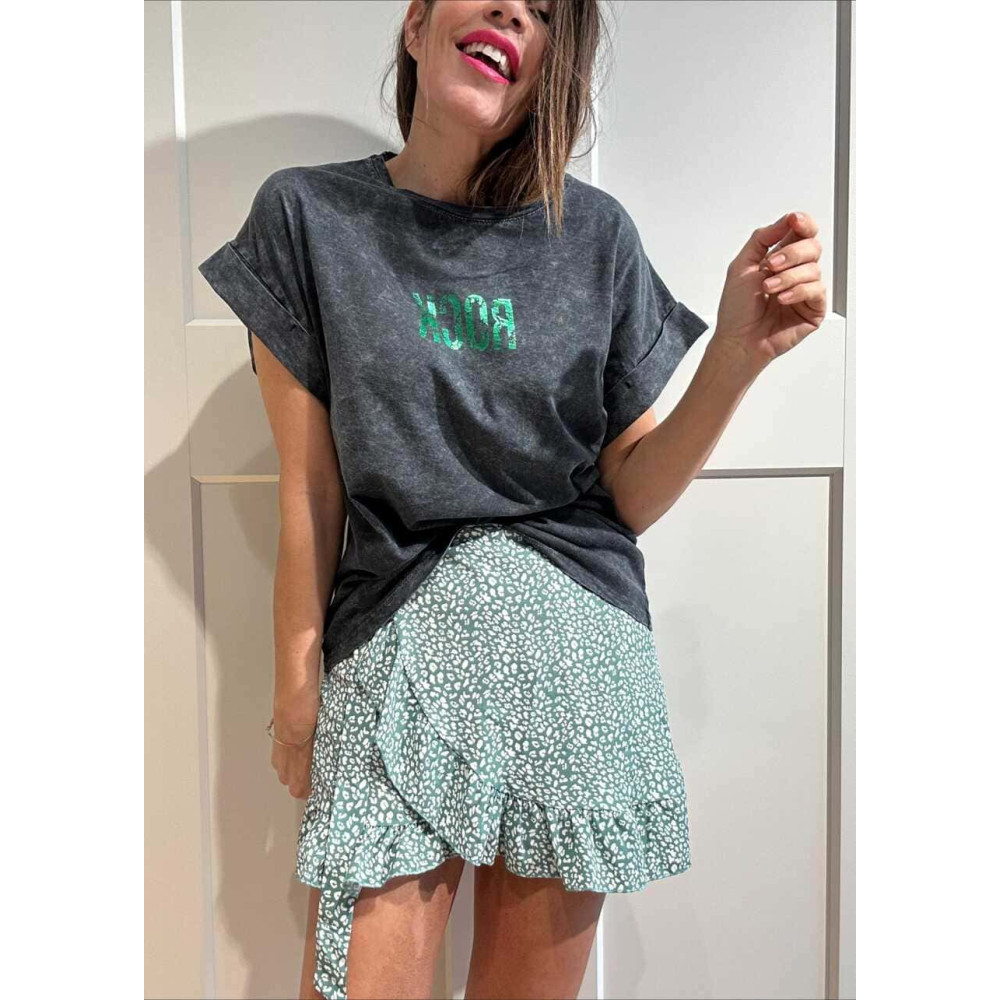 • Falda-pantalón corte pareo con terminaciones avolantadas.