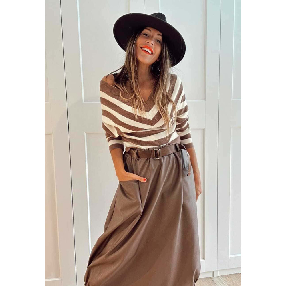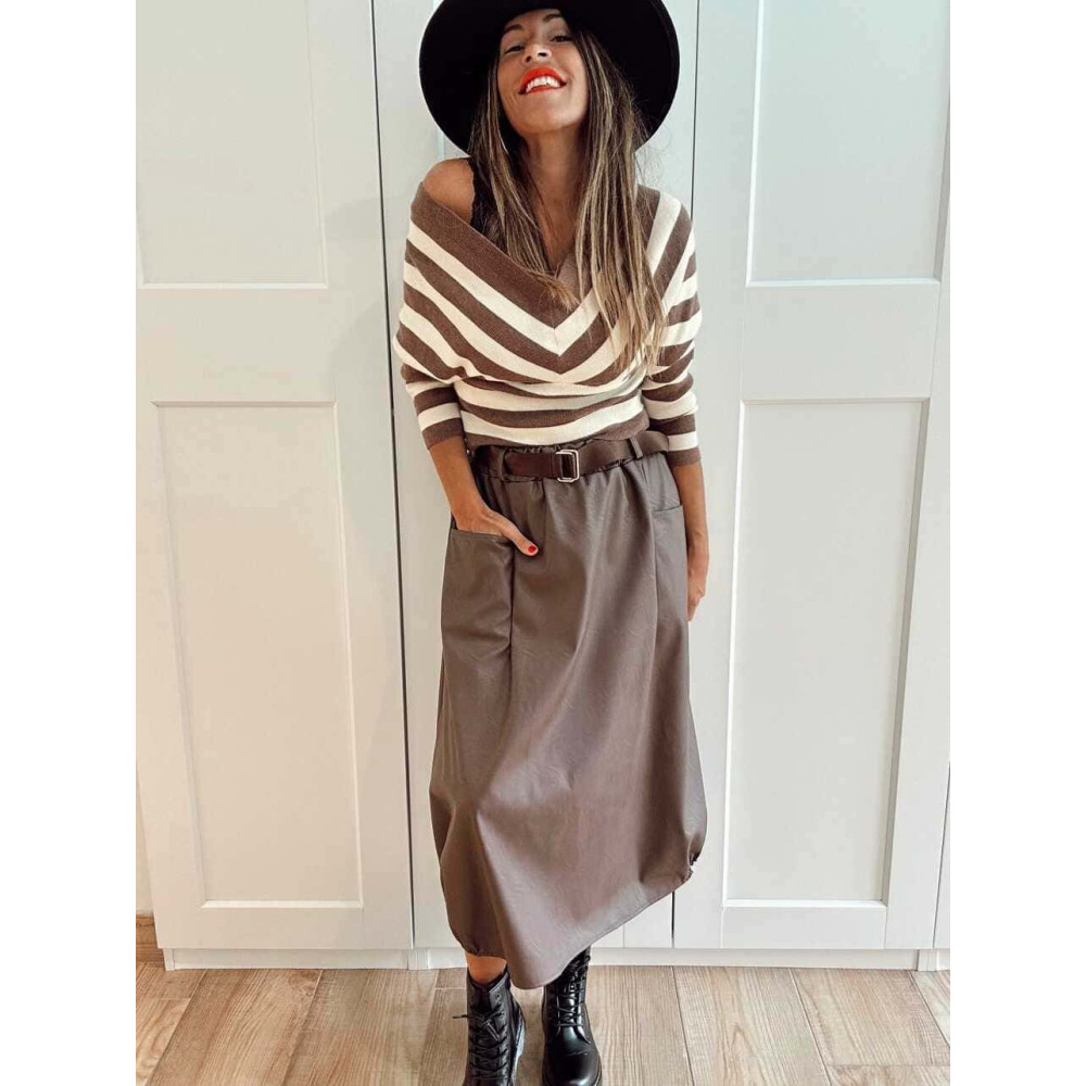 Éstas son aprox. las medidas de la Falda Polipiel con Cinturón VELKARA Marrón: