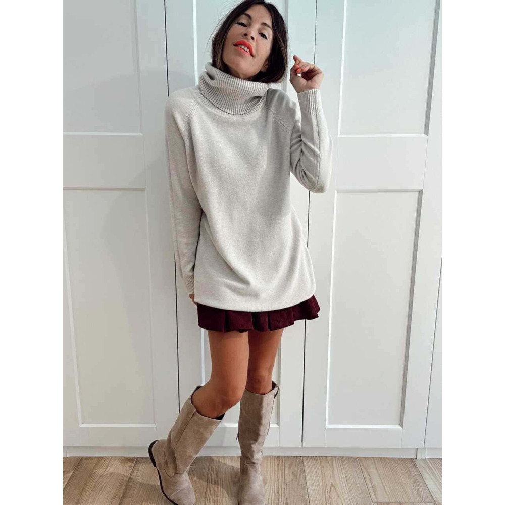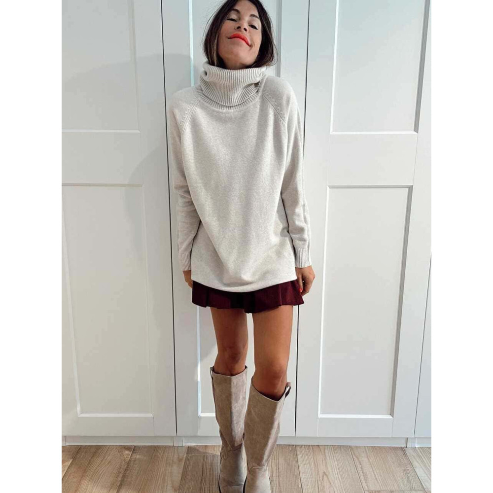- Falda-pantalón corta de pana con acabado plisado en delantero.