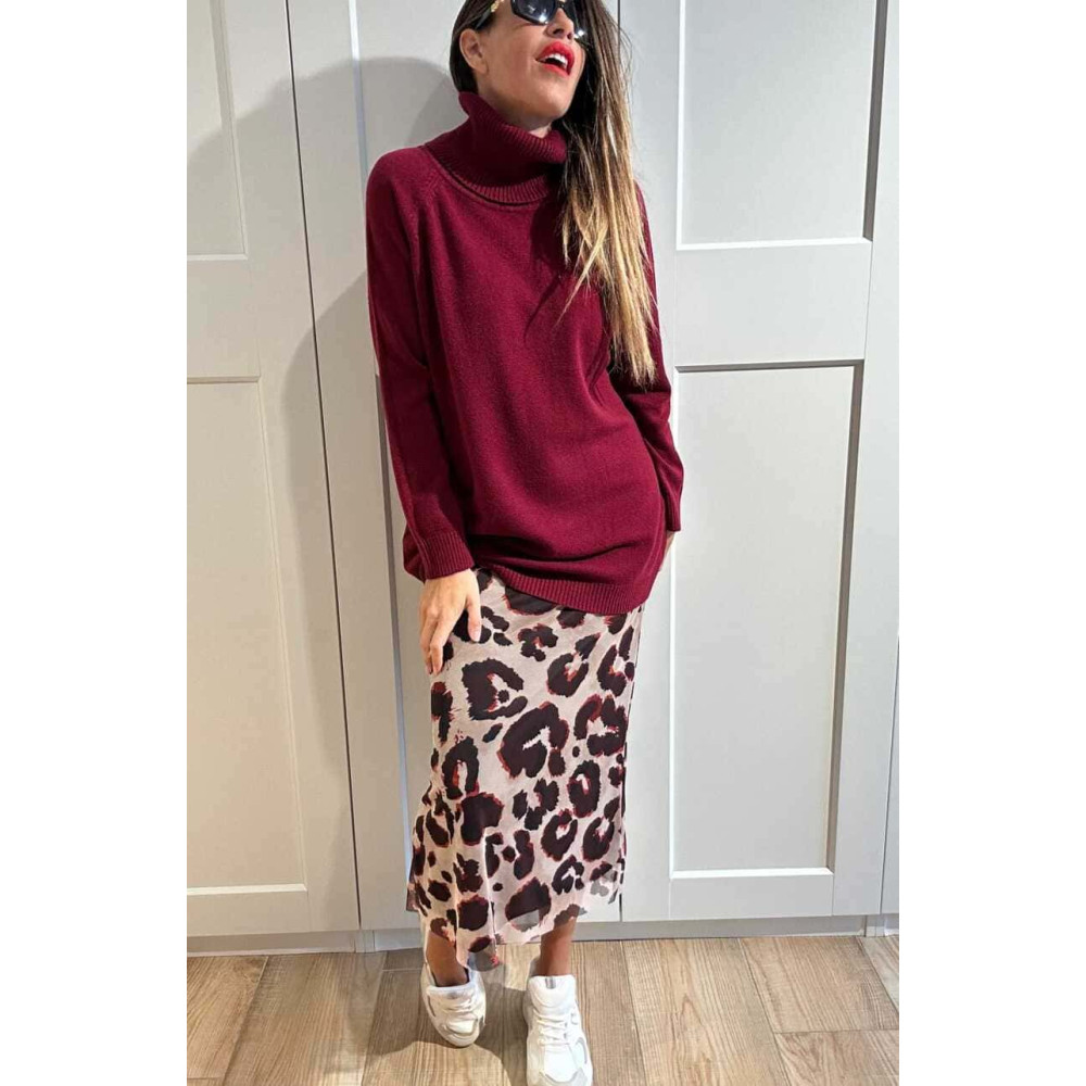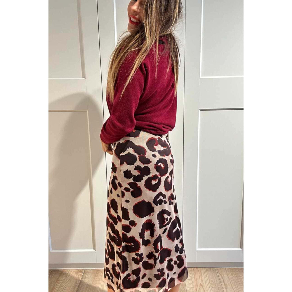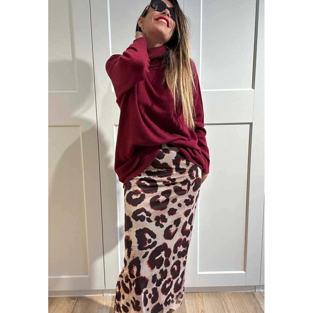 - Falda transparente de tull con estampado animal print en tonos beige, marrón chocolate y teja.