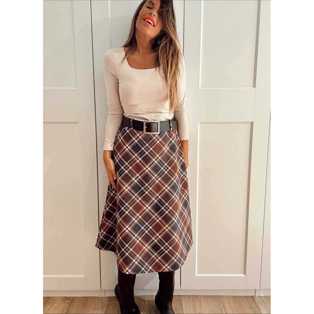 Éstas son aprox. las medidas de la Falda Cuadros con Cinturón HARLEE Marrón: