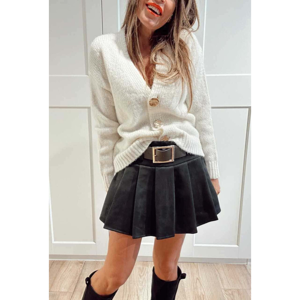 Falda Pantalón Plisada con Cinturón FRANNIE Negro