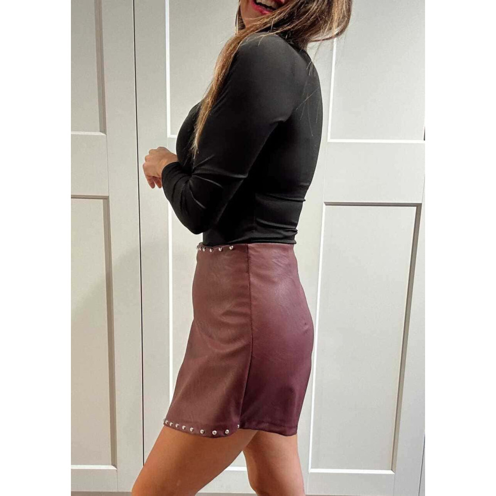 Falda Pantalón Efecto Piel con Tachas GAUTHIER Burdeos HEVE