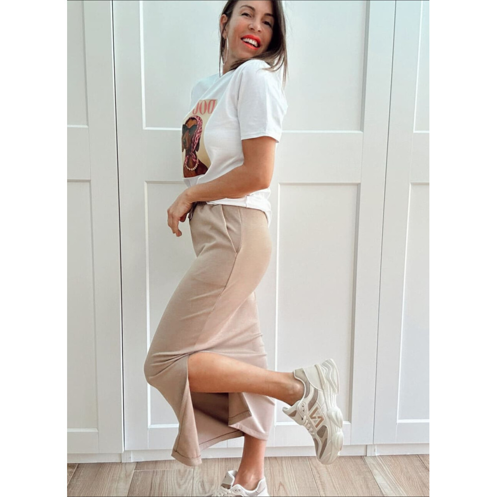 - Falda larga casual style con cintura elástica ajustable.