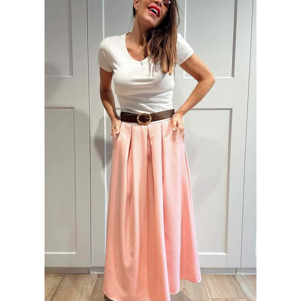 Falda Larga con Cinturón MIRENAI Rosa