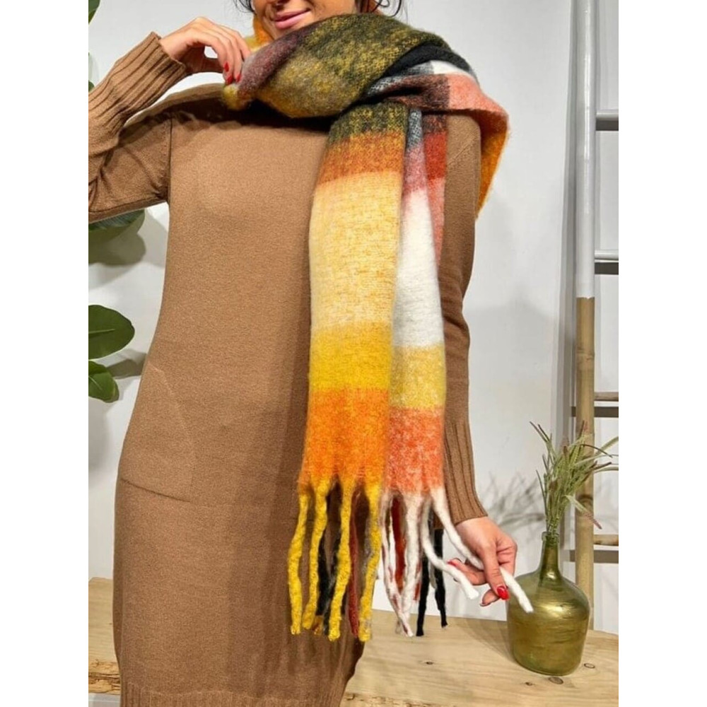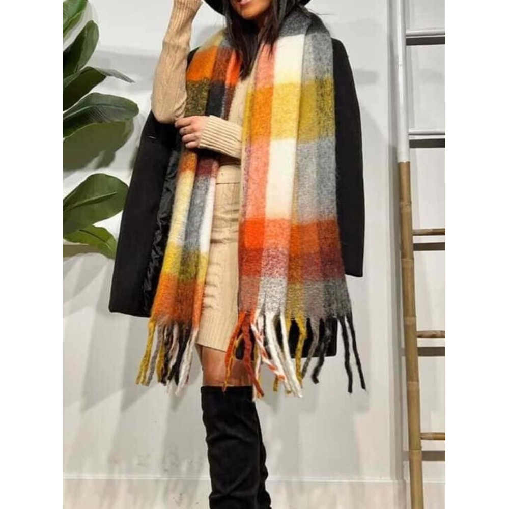 - Bufanda rectangular con cuadros de colores y flecos en los extremos... ¡¡súper calentita!! ❤