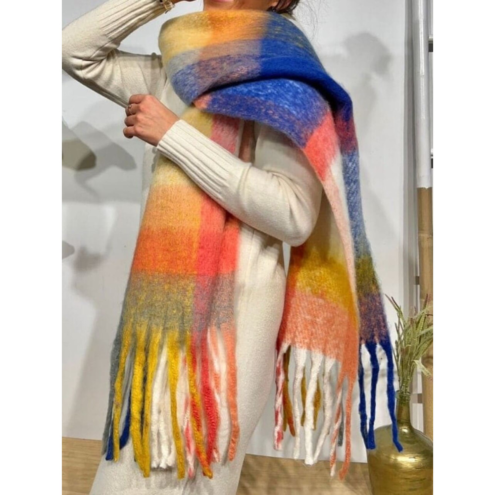 - Bufanda rectangular con cuadros de colores y flecos en los extremos... ¡¡súper calentita!! ❤