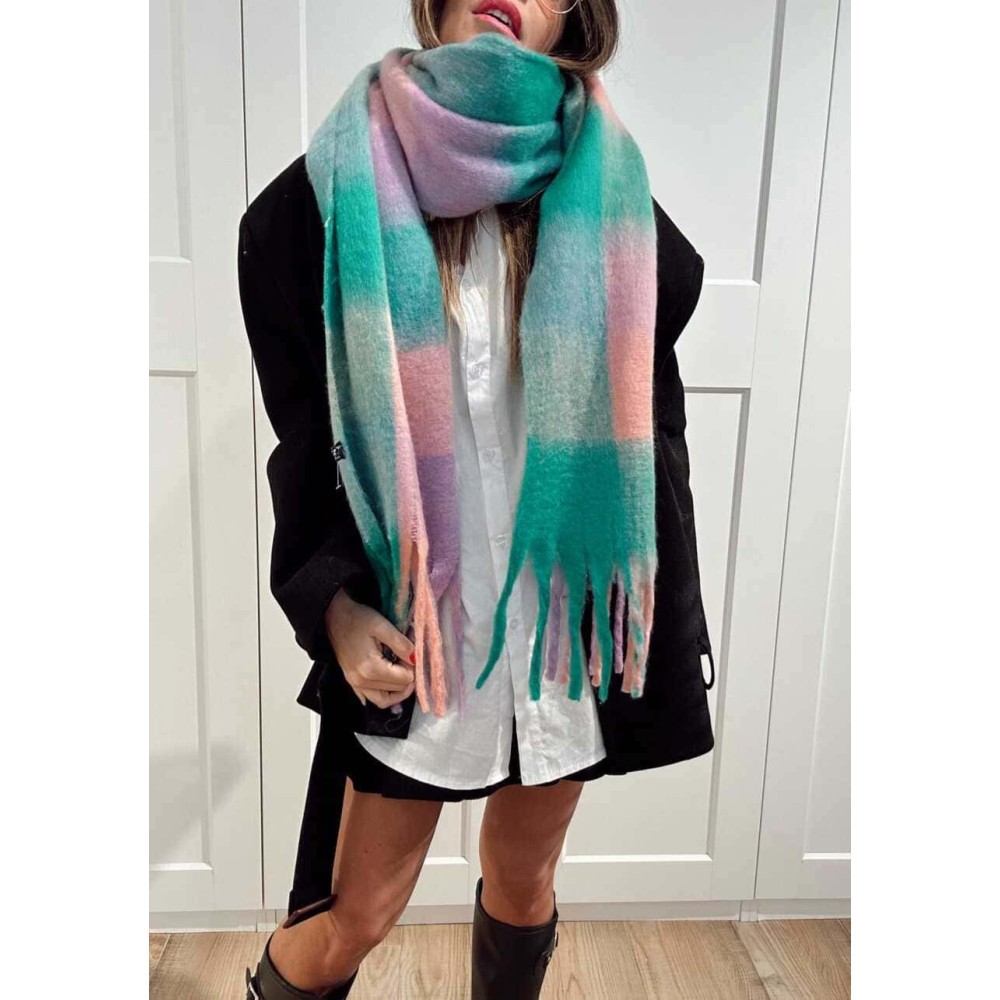 - Bufanda rectangular con cuadros de colores y flecos en los extremos... ¡¡súper calentita!! ❤