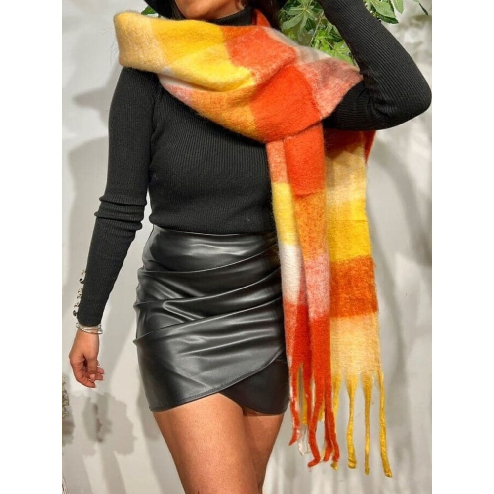 - Bufanda rectangular con cuadros de colores y flecos en los extremos... ¡¡súper calentita!! ❤
