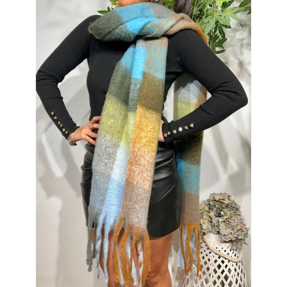 - Bufanda rectangular con cuadros de colores y flecos en los extremos... ¡¡súper calentita!! ❤