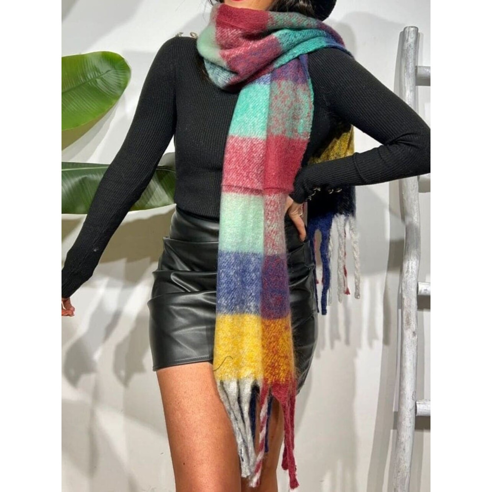 - Bufanda rectangular con cuadros de colores y flecos en los extremos... ¡¡súper calentita!! ❤