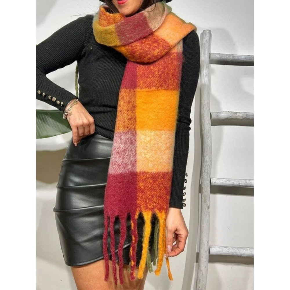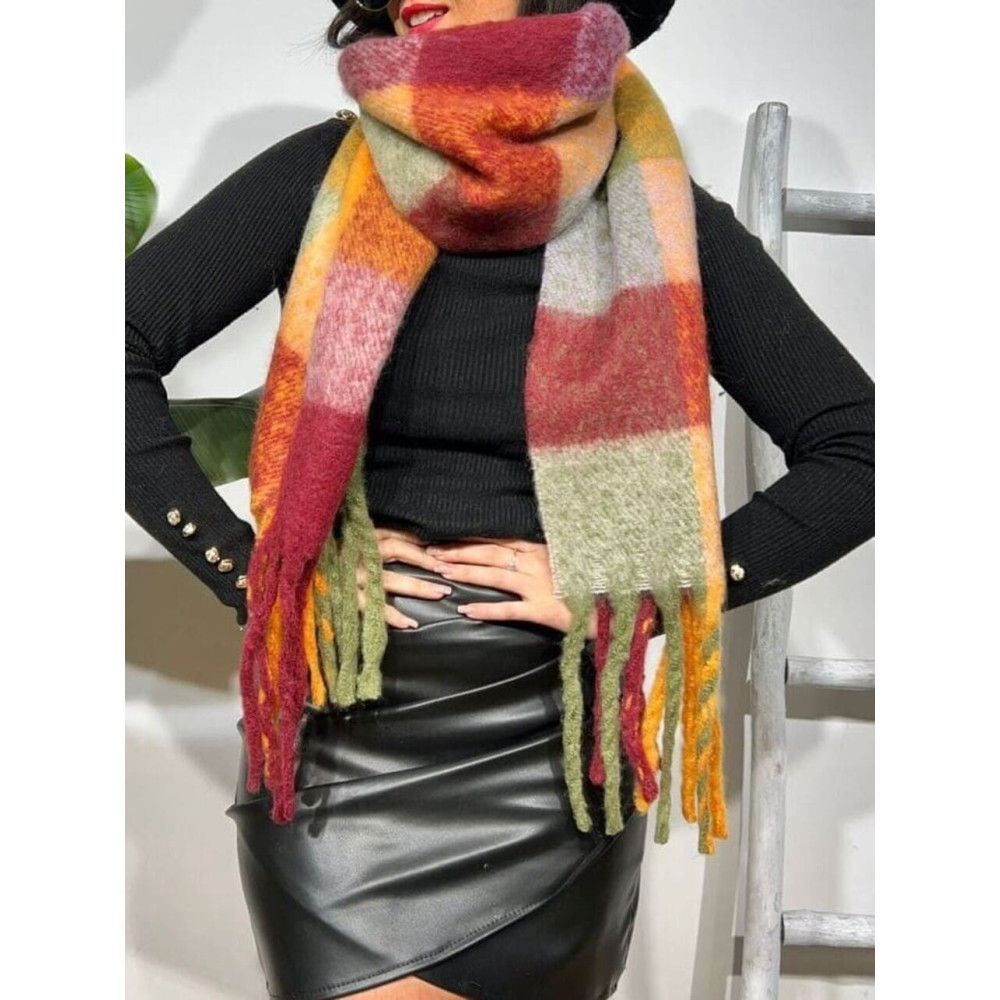 - Bufanda rectangular con cuadros de colores y flecos en los extremos... ¡¡súper calentita!! ❤