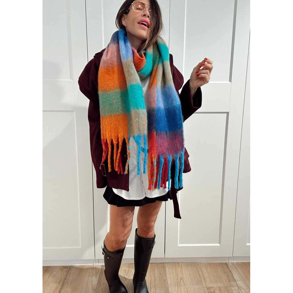 - Bufanda rectangular con cuadros de colores y flecos en los extremos... ¡¡súper calentita!! ❤
