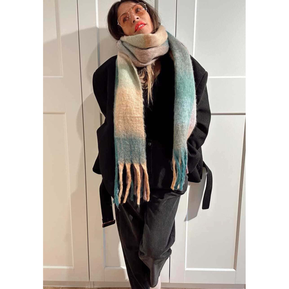 - Bufanda rectangular con cuadros de colores y flecos en los extremos... ¡¡súper calentita!! ❤