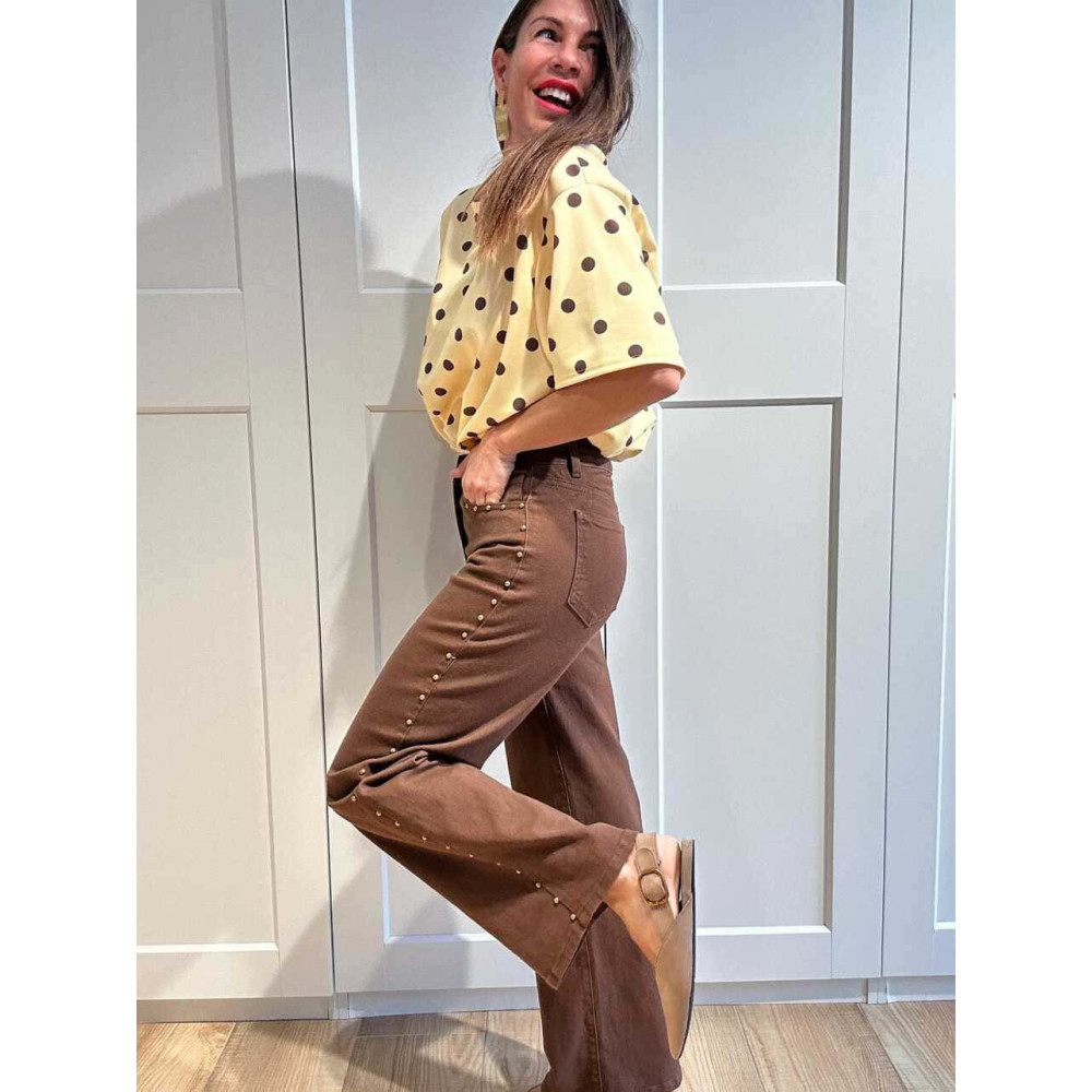 Jeans High Waist Tachas KELKA Marrón