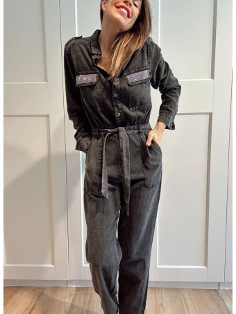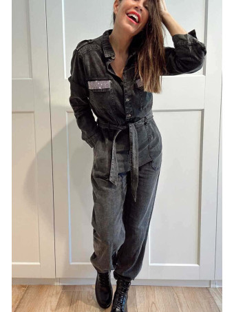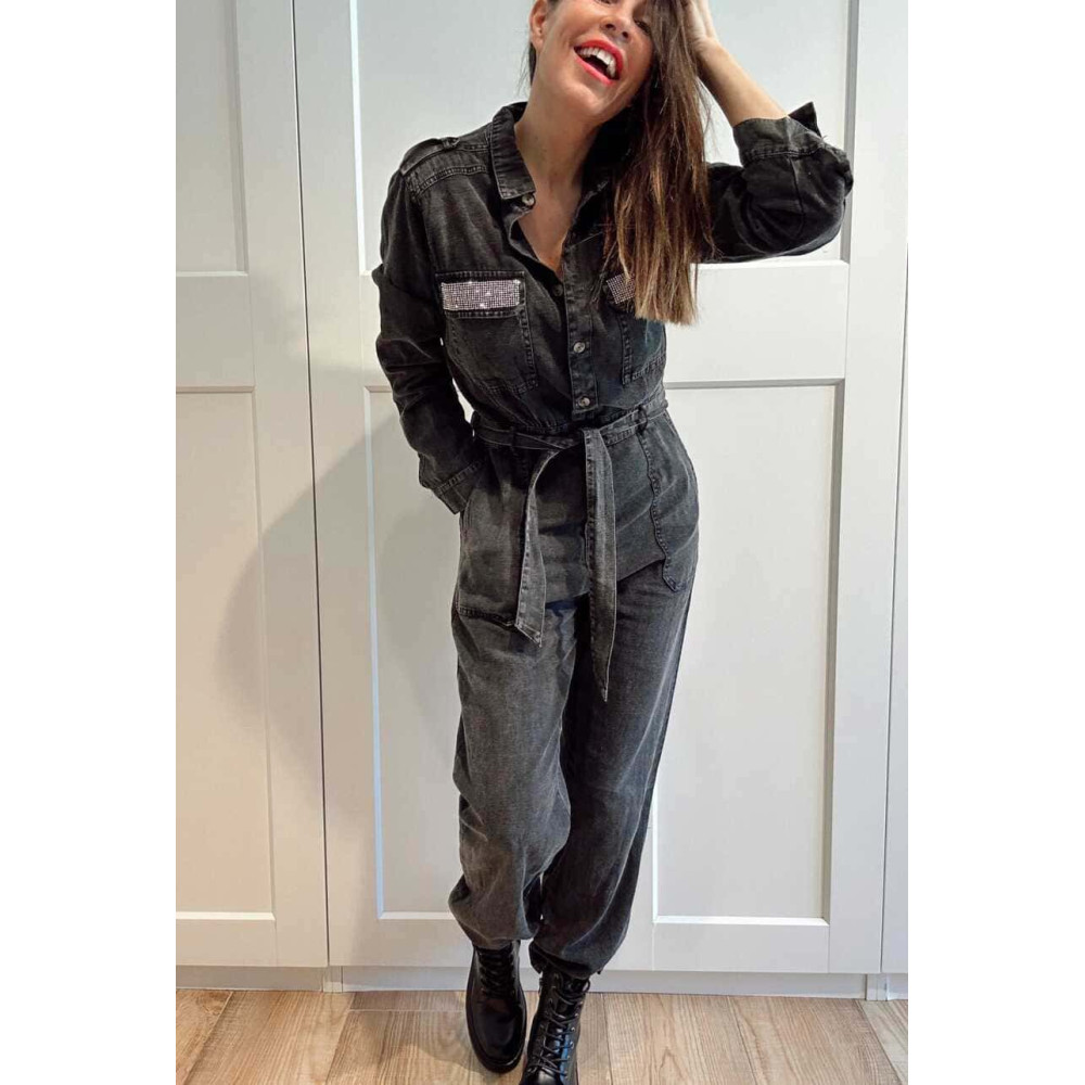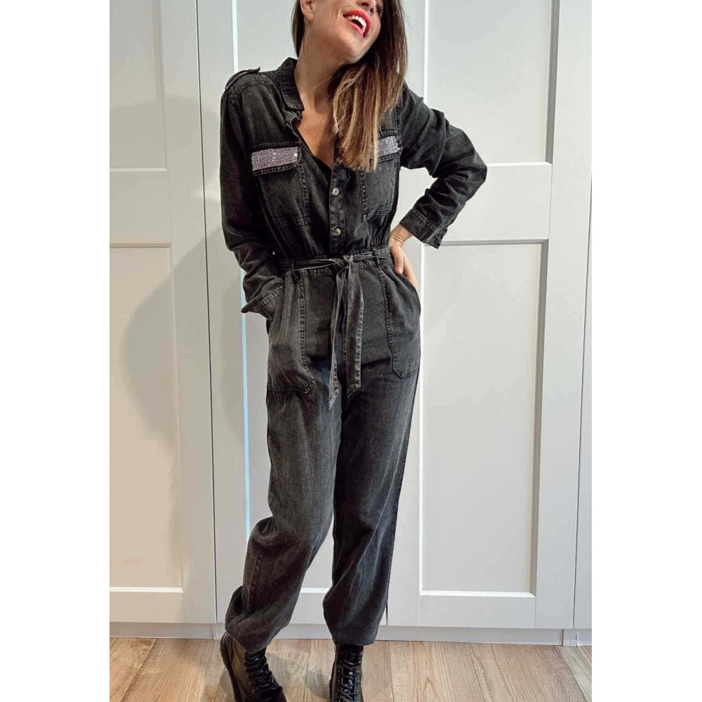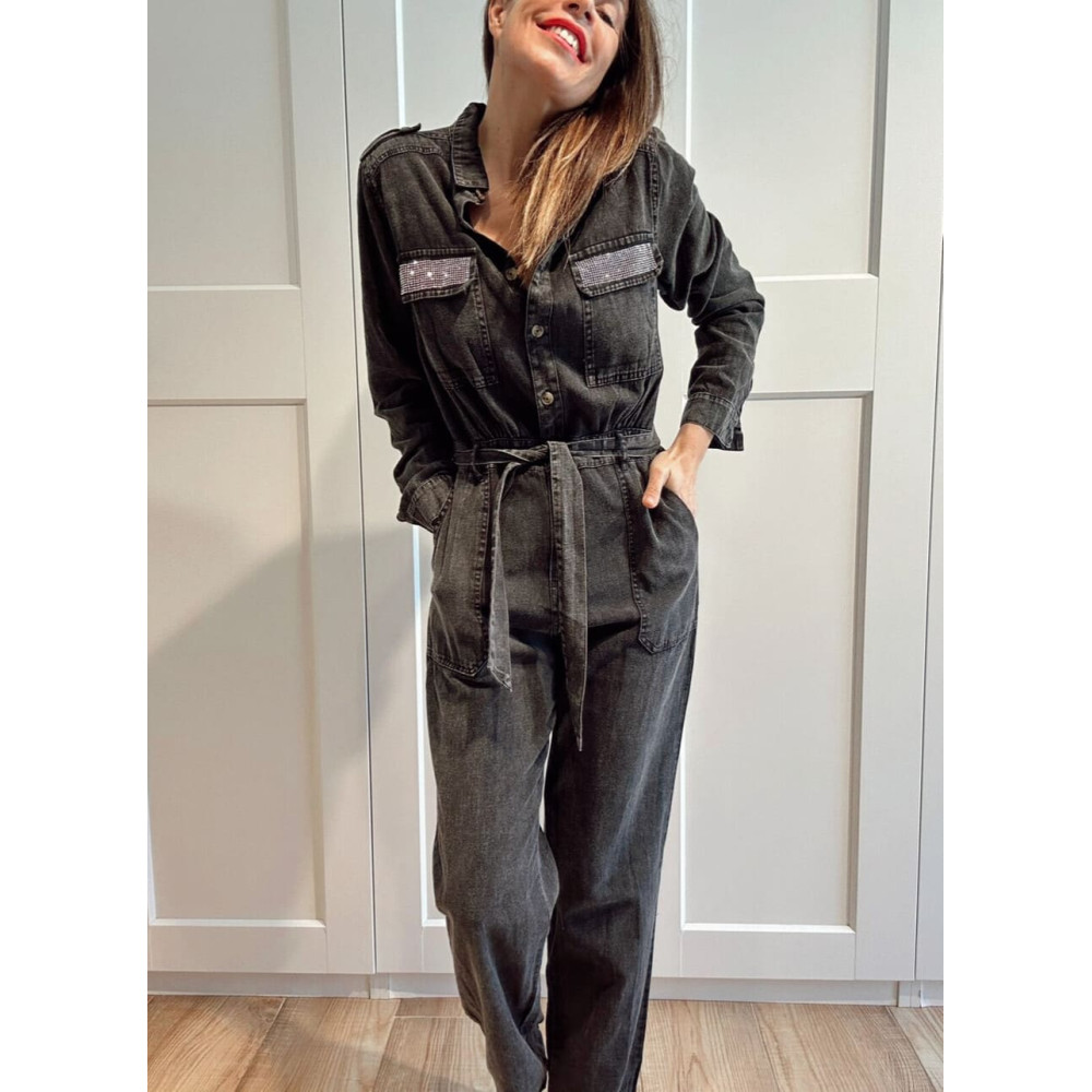 Mono Camisero con Strass OKAYA Negro