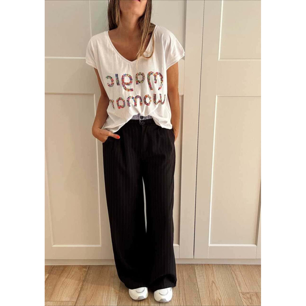 - Pantalón full lenght de tiro medio con cintura elástica efecto boxer.