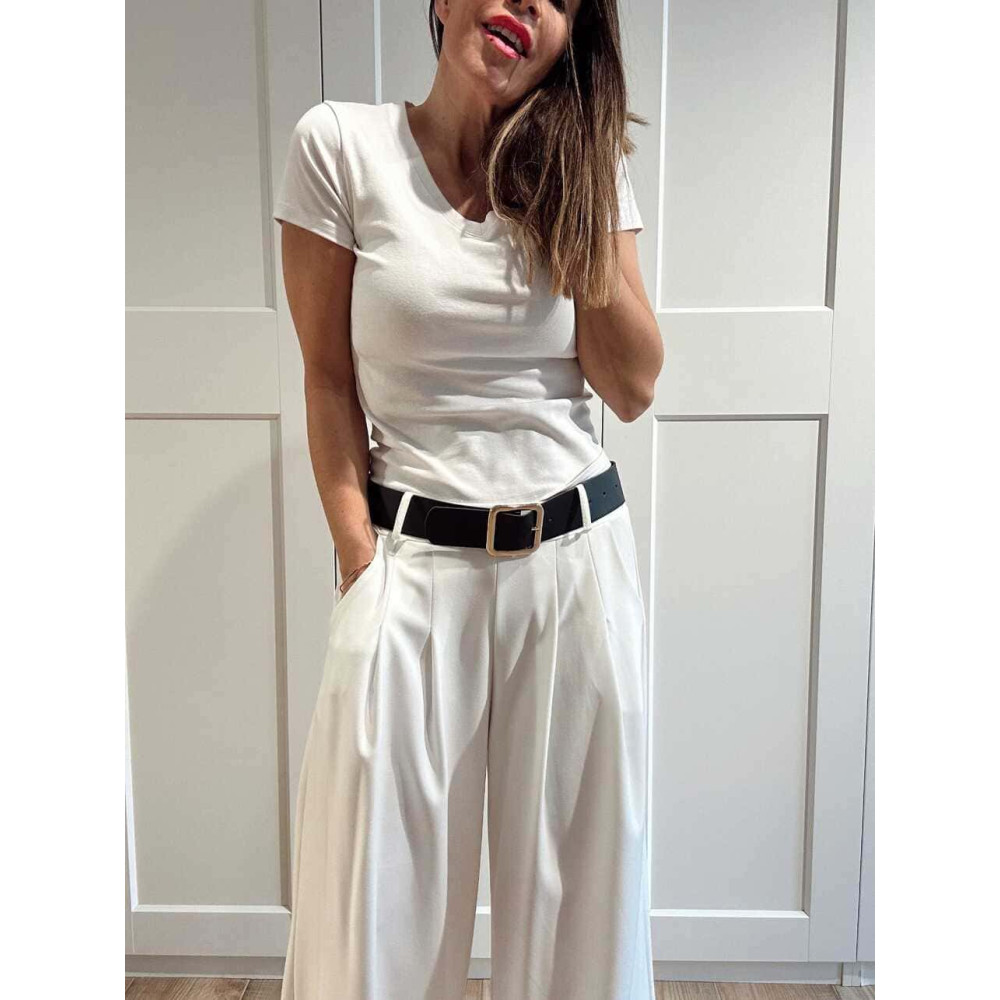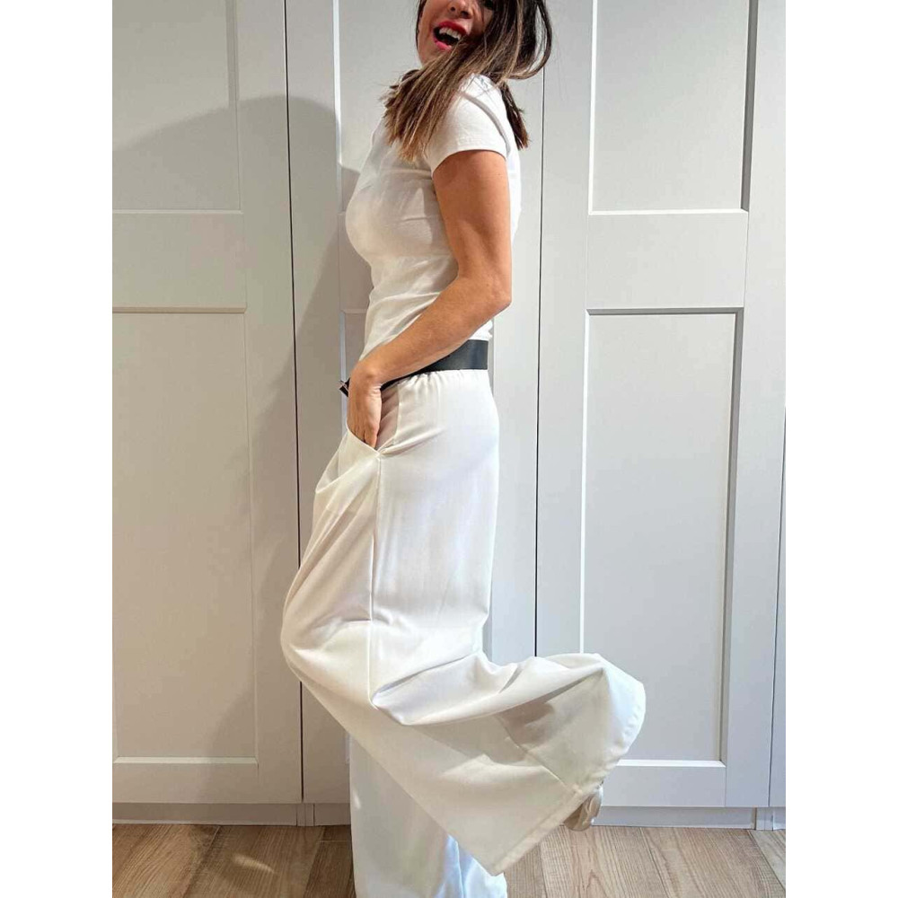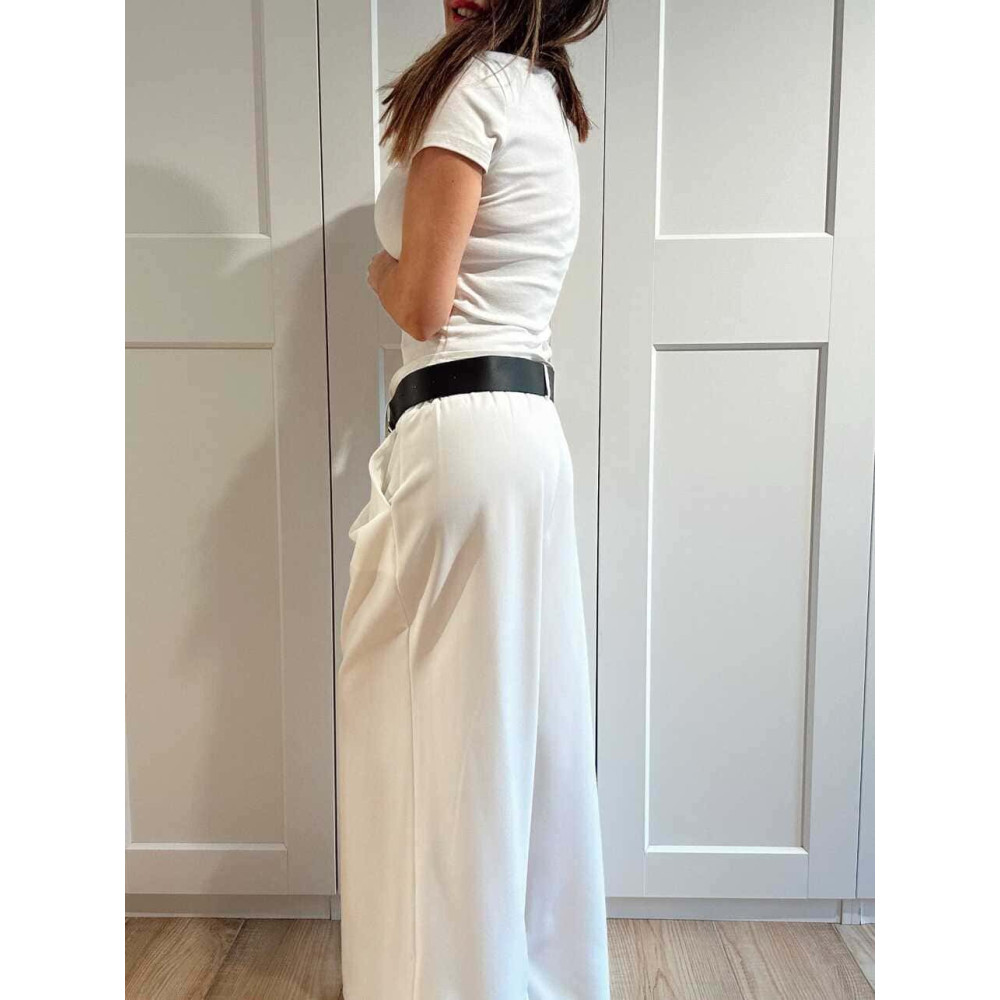 Pantalón Palazzo Cinturón CHARMELLIE Blanco