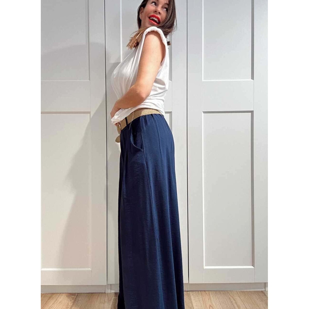 Pantalón Palazzo Cinturón Rafia RATHNEY Marino