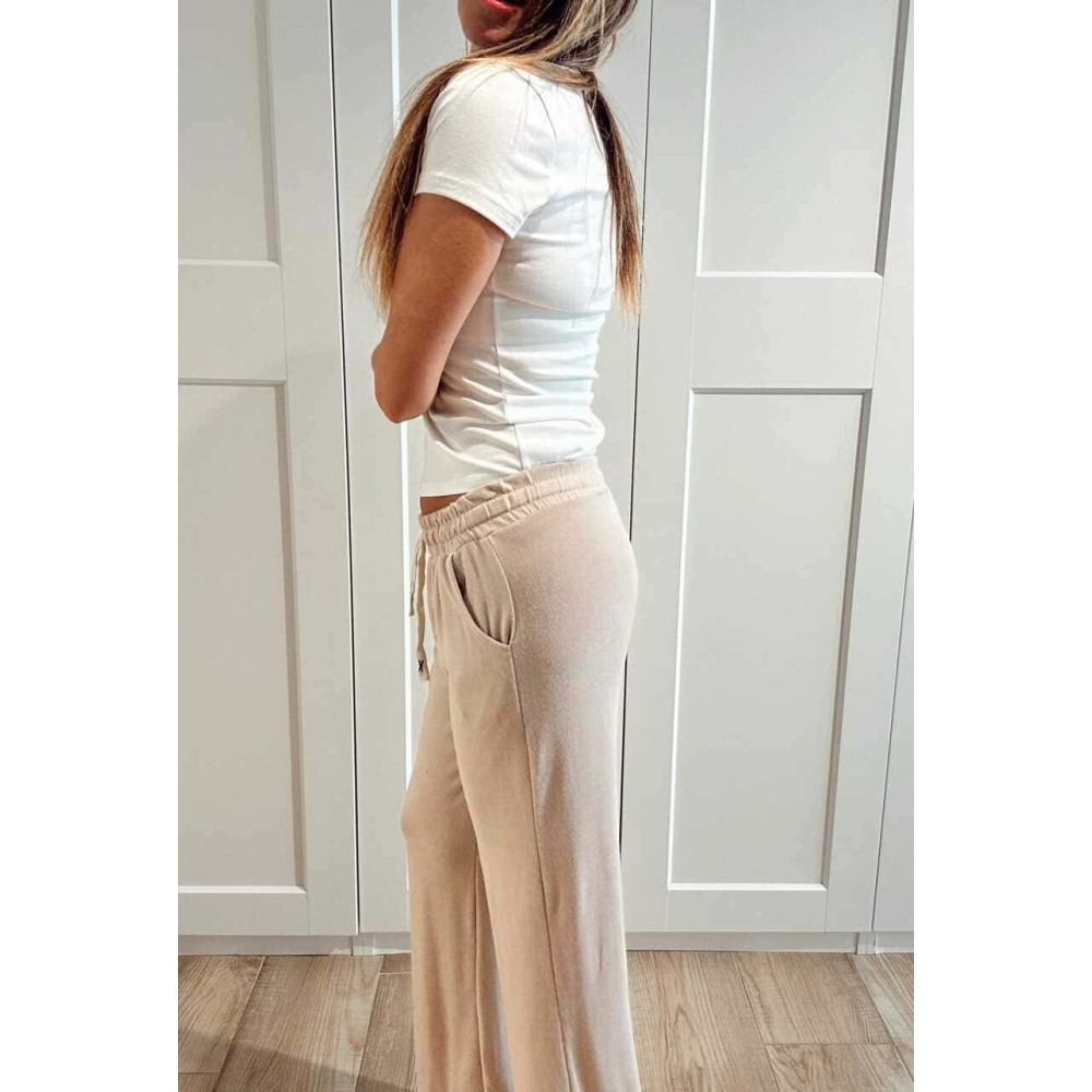 - Pantalón largo con pernera recta y cintura elástica ajustable.
