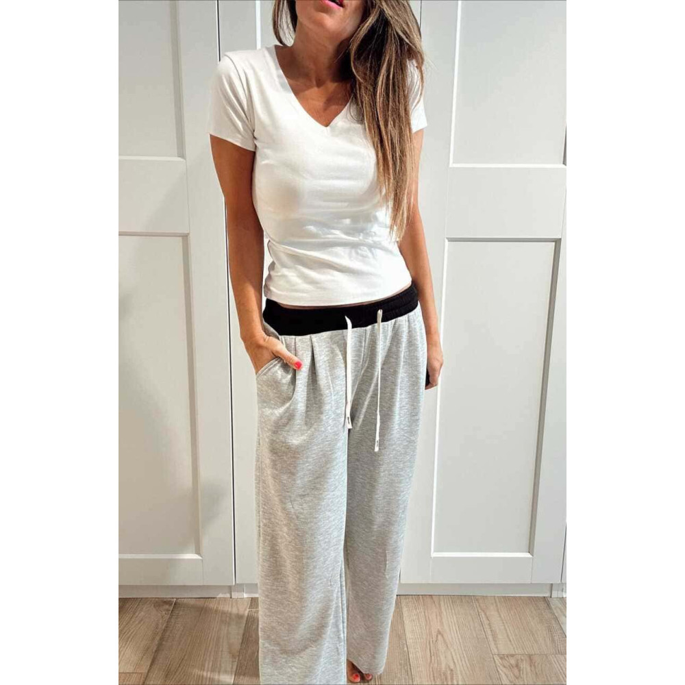 • Pantalón largo casual style con cintura elástica ajustable en contraste de color.