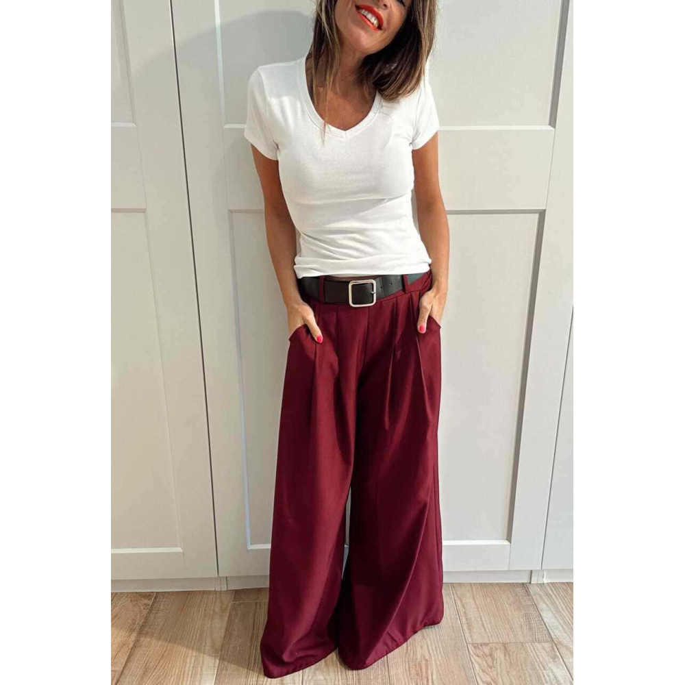 Pantalón Palazzo Cinturón CHARMELLIE Burdeos