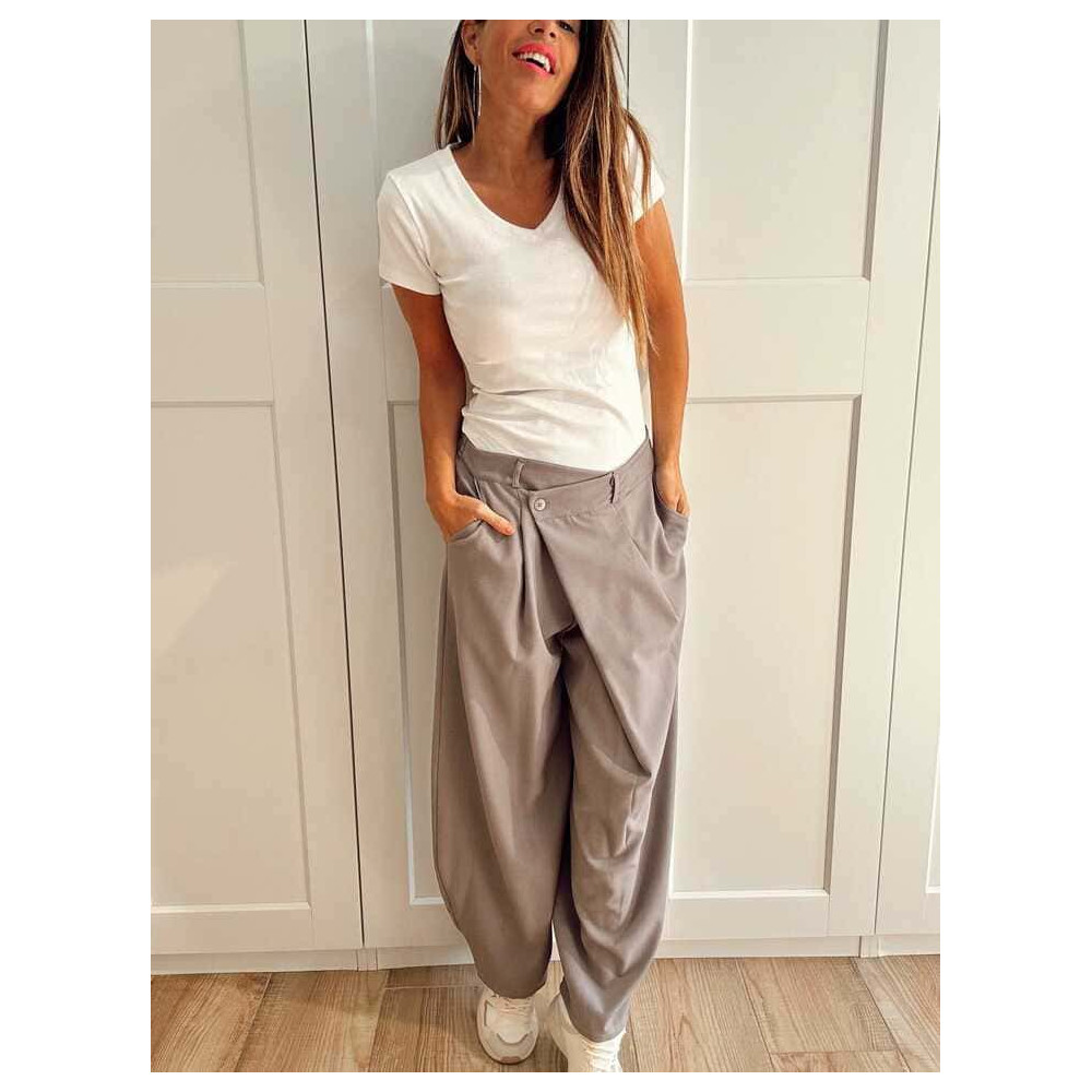 Pantalón Balloon Efecto Cruzado ZAVELLE Gris