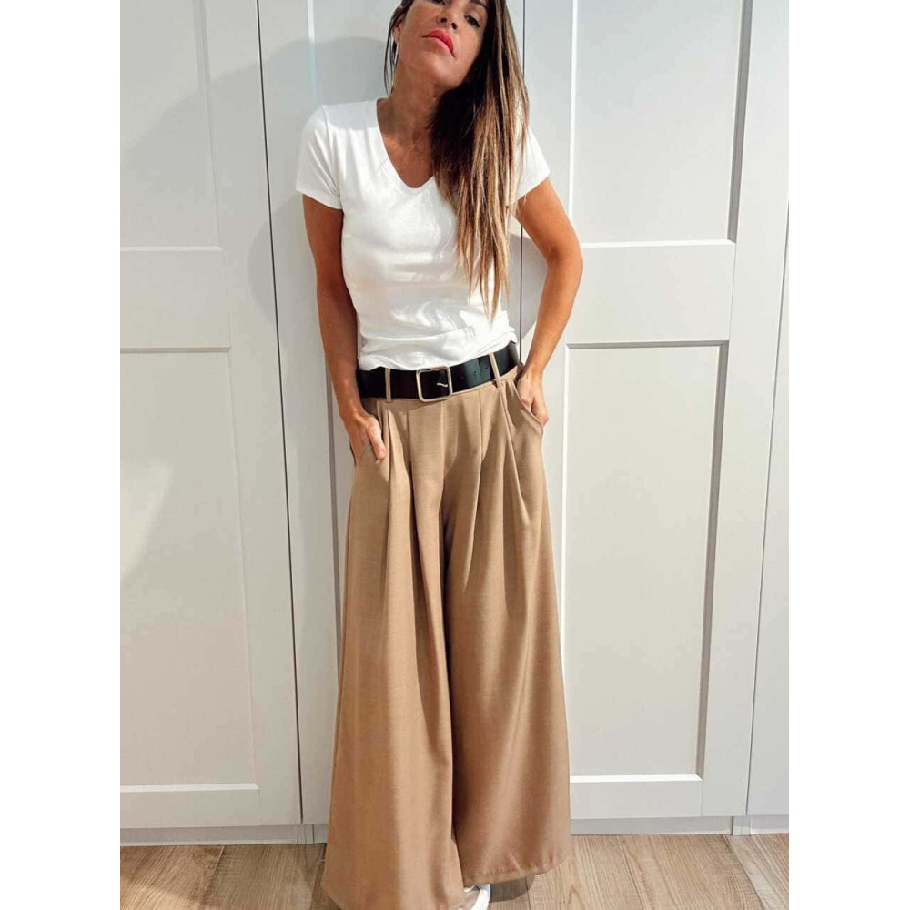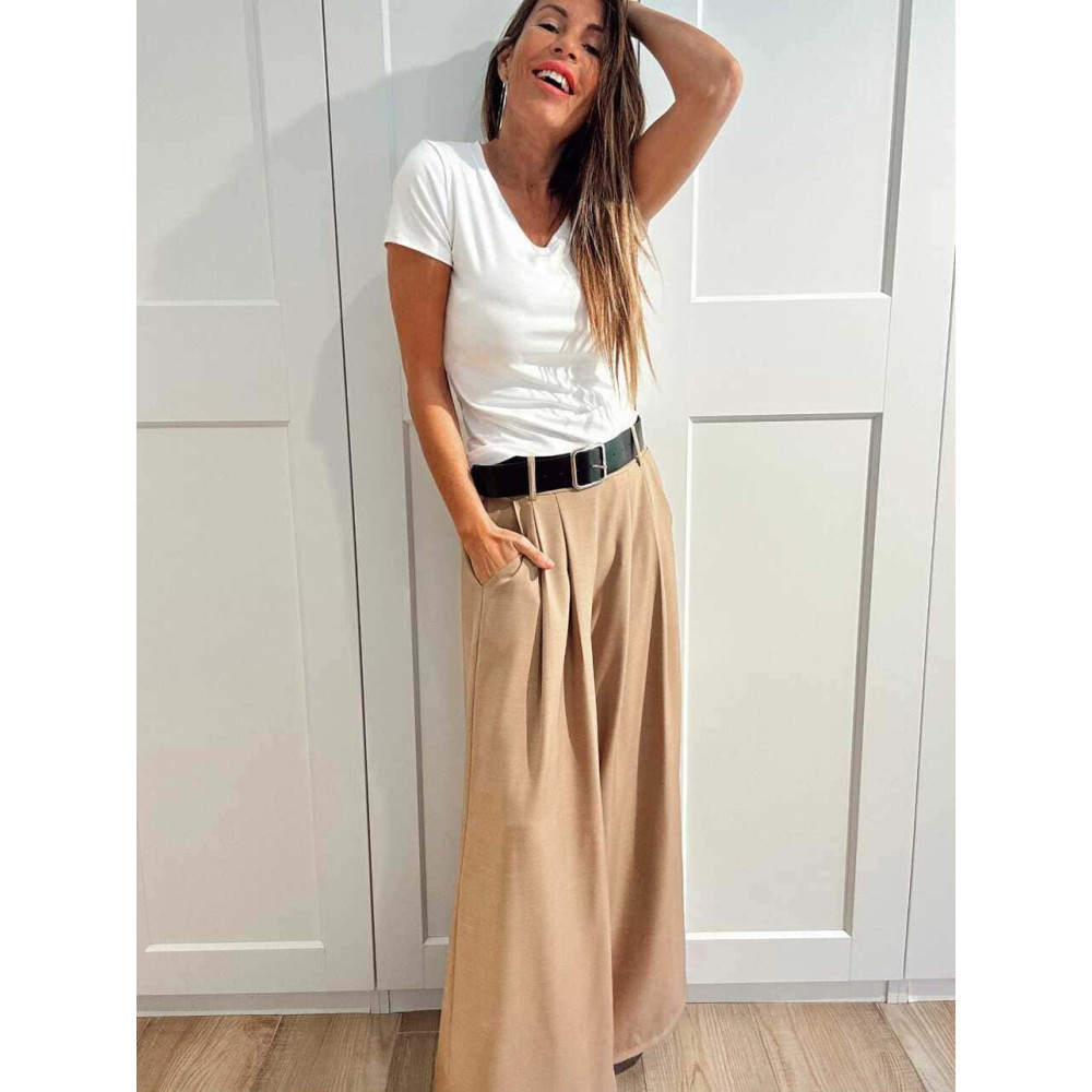 Pantalón Palazzo Cinturón CHARMELLIE Tostado
