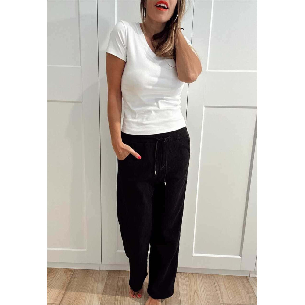 - Pantalón largo casual style confeccionado en pana con acabado elástico.