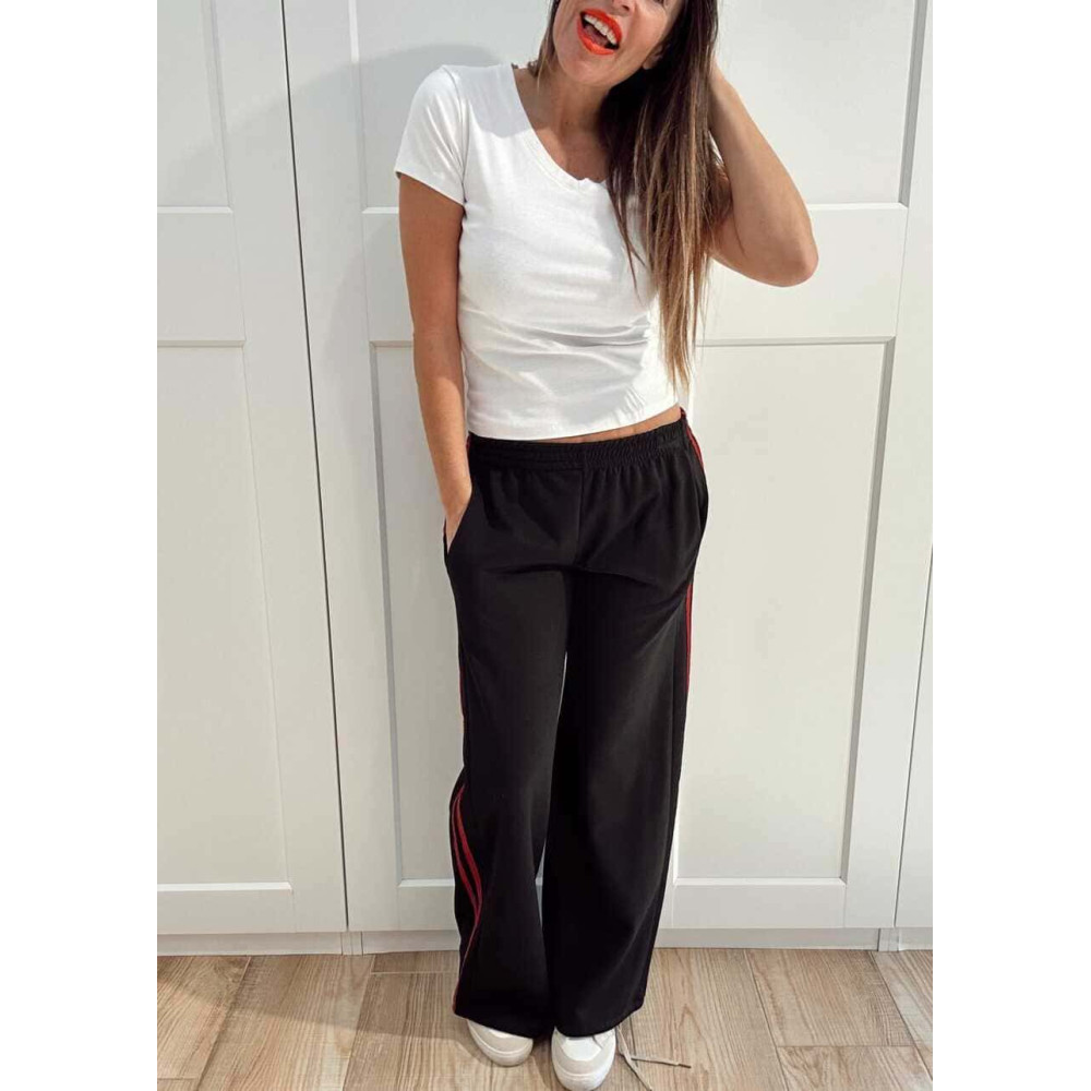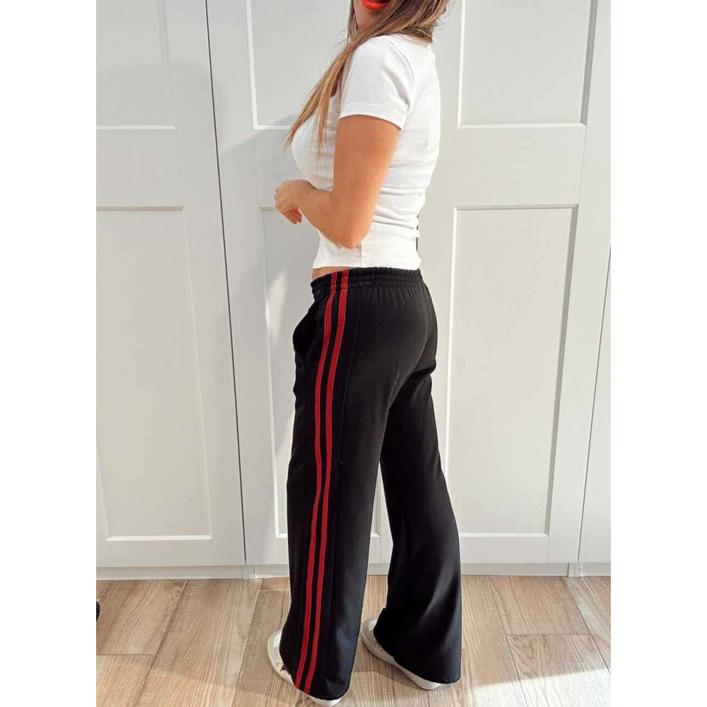 - Pantalón largo sport style con franja lateral a contraste en color burdeos.