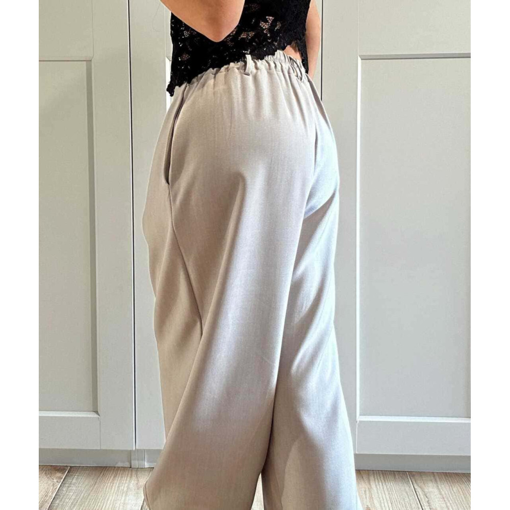 - Cintura con pinzas, trabillas y elástico en la espalda.